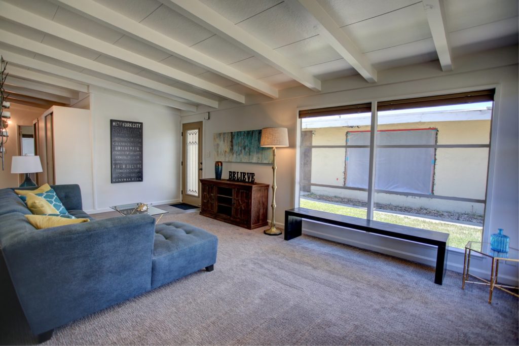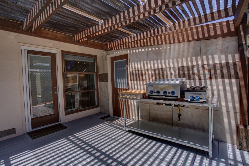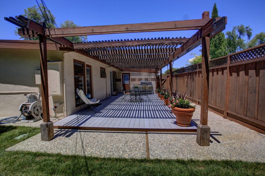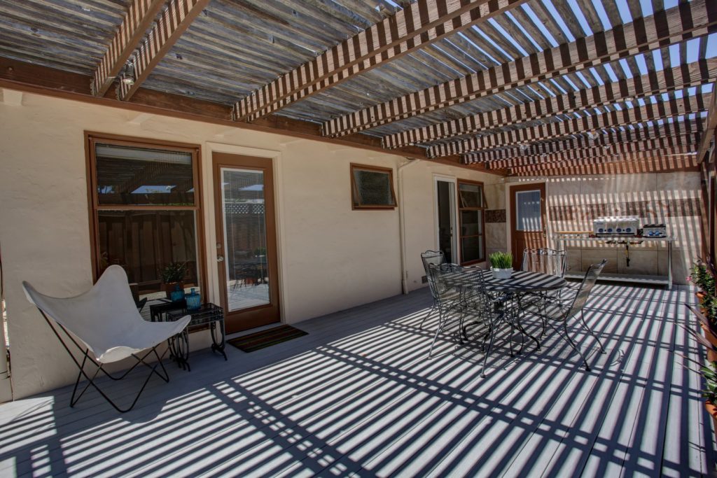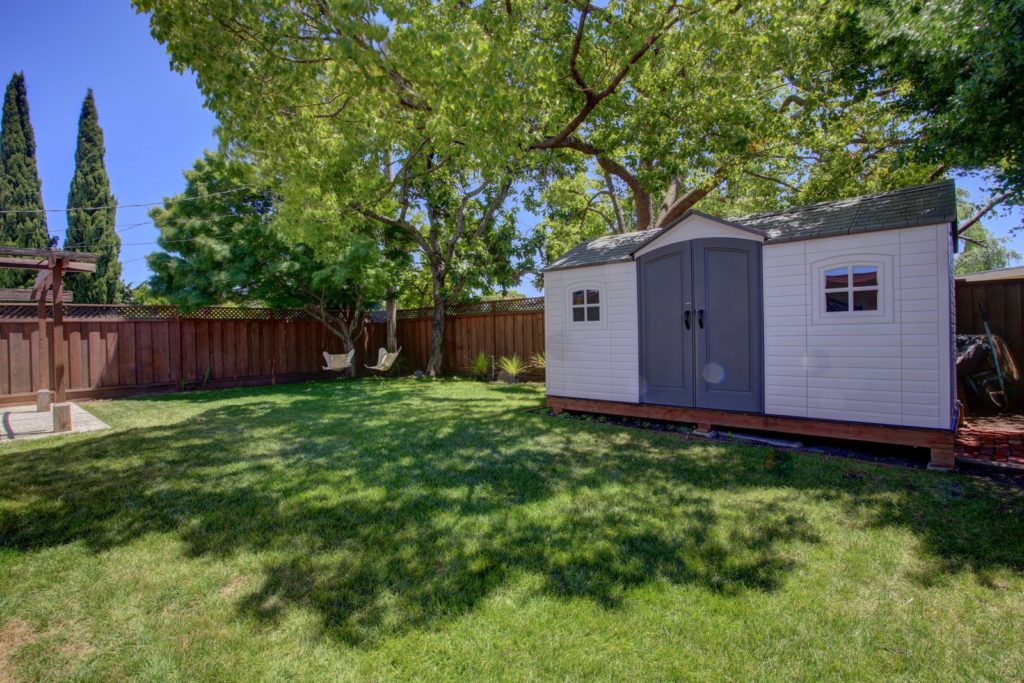 Updated Mid-Century Modern style home in a quiet neighborhood walking distance to Santa Clara’s Central Park. Updated kitchen stainless steel appliances, wood cabinetry, quartz countertops & subway tile backsplash. Modern lighting throughout w/ wall sconces & overhead fixtures. Interior walls are all insulated reducing room to room noise. Living room features plush high-end Berber carpet & stylish brick fireplace w/ infrared heating element. Exterior doors feature blinds in pane & garage door with auto opener. All closet sliders in the house including closet doors are covered in decorative “Wilsonart” laminate. Hall bathroom features Terrazzo tile in shower enclosure and floor and natural light thru skylight. Master features door to back deck & private bath with tiled shower stall. Private backyard has a perfect outdoor grilling area with plumbed in gas on a new composite deck & large shaded lawn area. Other features include finished garage, double sized storage shed, & foam roof.