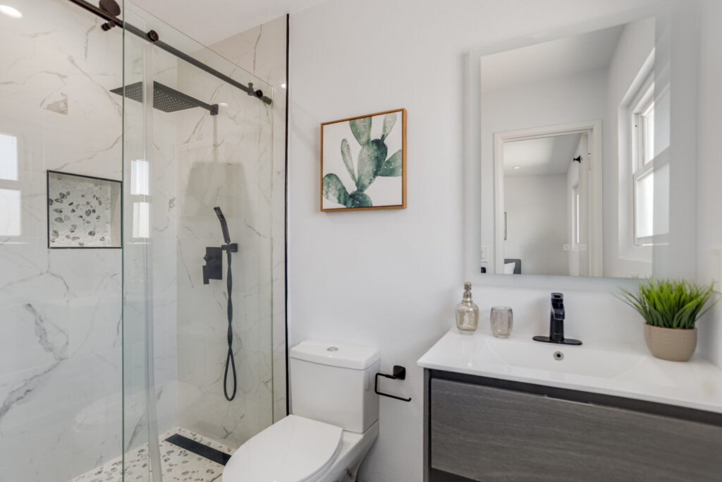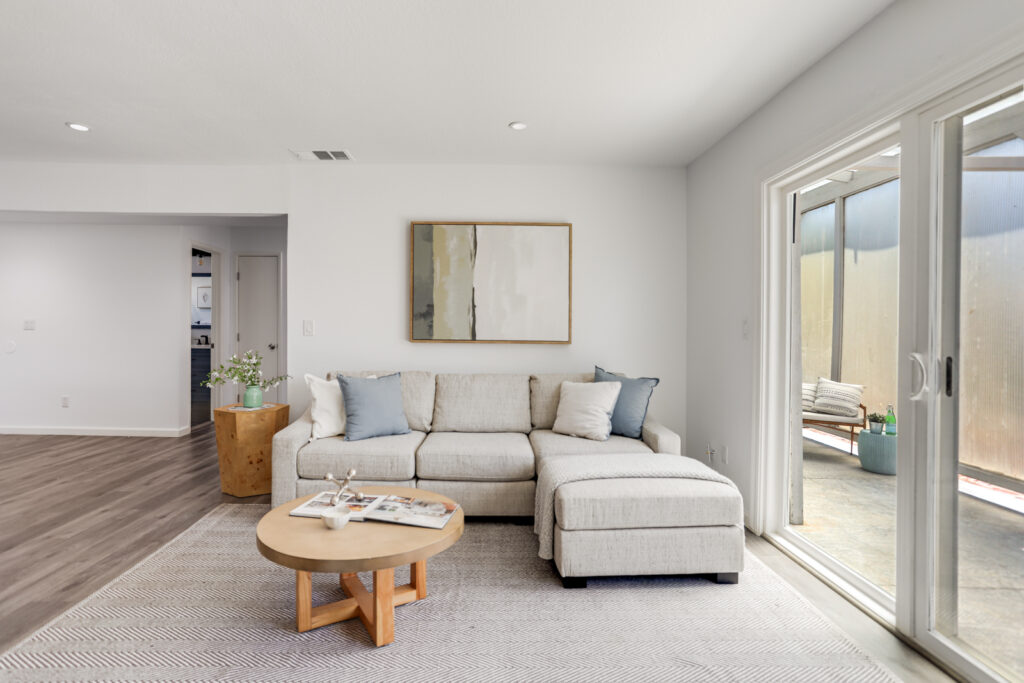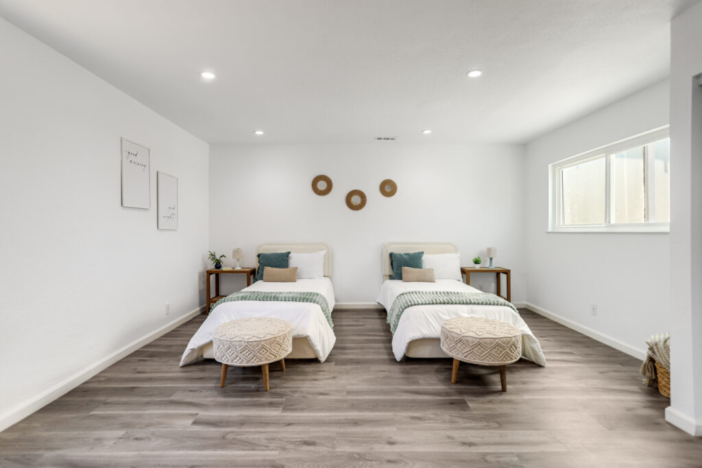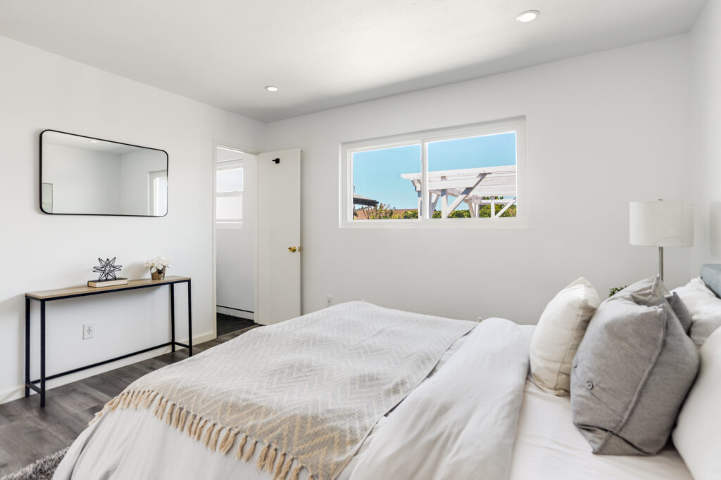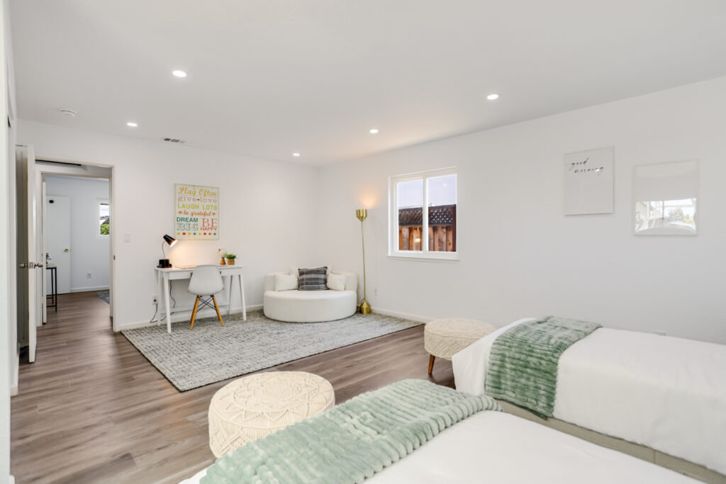Each of the two guest bedrooms offers ample room—one oversized and thoughtfully expanded—while the private primary suite boasts its own ensuite bath, stylishly remodeled with designer fixtures and finishes. Throughout the home, LED recessed lighting, dual-pane windows (and sliding doors), plus central heating and AC ensure year-round comfort.