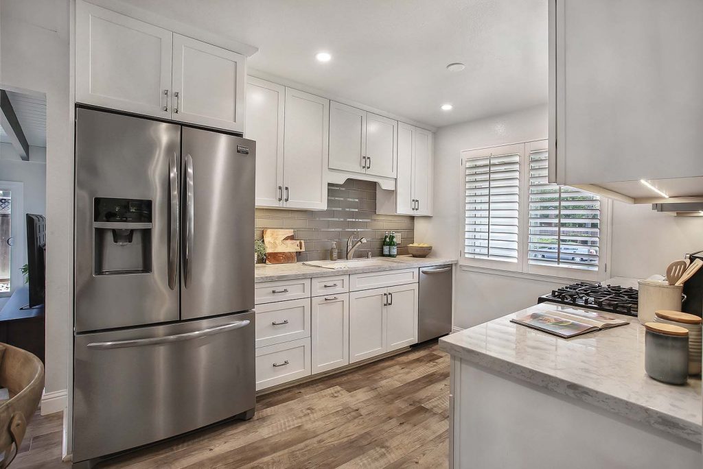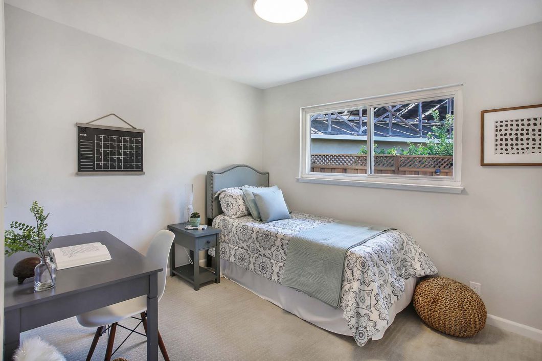 Beautifully-updated home located in Bonnie Brae offers two spacious living areas, updated kitchen/bathrooms, & fully-landscaped backyard with pool/spa. The updated kitchen features quartz countertops, a gorgeous subway tile backsplash, stainless-steel appliances, & recessed lighting. Sun-filled formal living room features a wood-burning fireplace & recessed lighting. The large family room is complete w/ beamed ceilings, sliders leading out to side yard, & an attached office space. The landscaped backyard oasis features a sparkling pool & hot tub, artisan pavers, flower beds, & artificial turf area— perfect for entertaining. The home’s large master retreat is complete w/ sliders leading to the backyard, a spacious closet, & a renovated ensuite w/ frameless shower enclosure, large vanity, & contemporary finishes throughout. Additional features include durable laminate flooring, new plush carpeting, central heating, & an ideal location close to great schools & major tech companies.