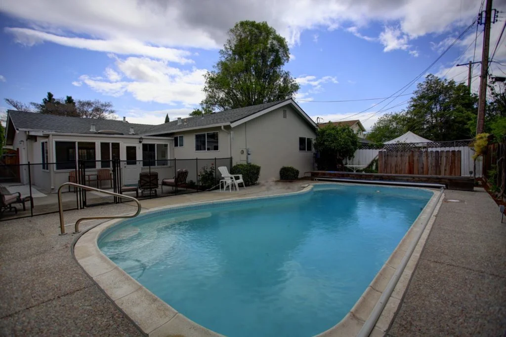Updated and stylish Darvon Park home featuring large living room , spacious eat in kitchen, and master bedroom with spacious private bath. Spacious living room features a wood burning brick fireplace, hardwood floors, and wired for wall mounted TV. Kitchen is spacious and features shaker style maple cabinetry, gas cooking, dishwasher, oven, refrigerator, and Corian countertops. Dining area is large and overlooks back patio and pool. Backyard features large inground pool with solar heating system, child protective barrier, and motorized pool cover. Other features include oversized garage with automatic door, dual pane windows, central AC and heating, and refinished hardwood floors througout.