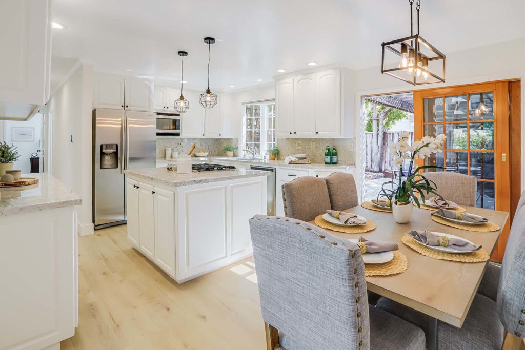 Beautifully updated single-family home with a wonderful floor plan located in the heart of Santa Clara, at a highly desirable location! This move-in-ready 3 bedroom, 2 bathroom home offers a spacious living room, comfortable family room with fireplace/built-ins, and an updated eat-in kitchen. The large kitchen features granite countertops/backsplash, stainless steel appliances, updated cabinets, and a central island overlooking the dining area. Slider doors open to a serene, spacious backyard featuring mature shade trees, grass with automatic sprinkler system, and a large patio – a safe venue for kids play area, or perfect for entertaining family and friends. Includes rose plants and flourishing apple, pomegranate, and orange fruit trees. Additional features include gorgeous & durable wide plank flooring throughout, fresh interior paint, newly installed A/C w/ smart thermostat, recessed lighting, pre-wiring for mounted tv, & energy-saving dual-pane windows. Unique location – quiet residential neighborhood but only walkable distance to grocery stores, convenience stores & popular restaurants. Steps away from tech company shuttle stops and a short commute to major tech companies incl. Apple, ServiceNow, Nvidia, and LinkedIn, etc. Walking distance to Bowers and Central park.