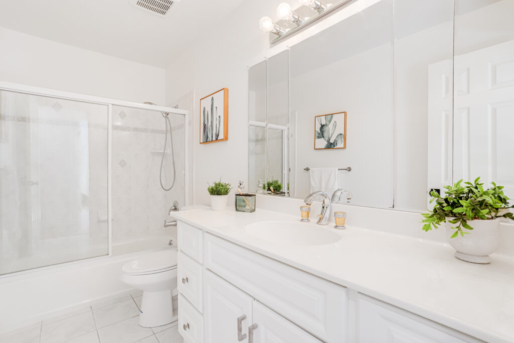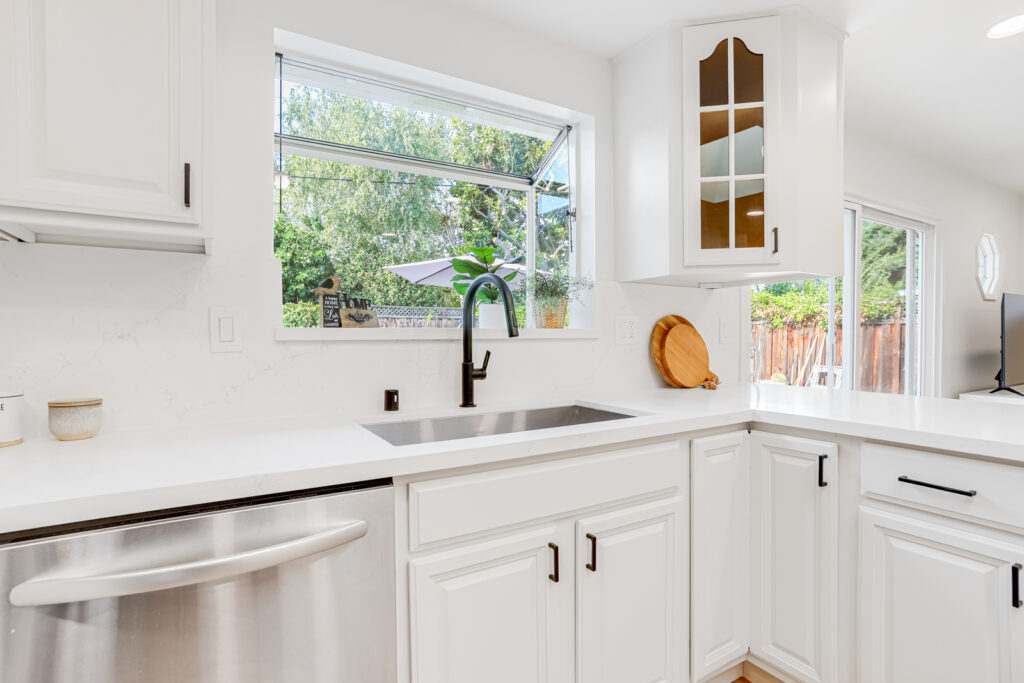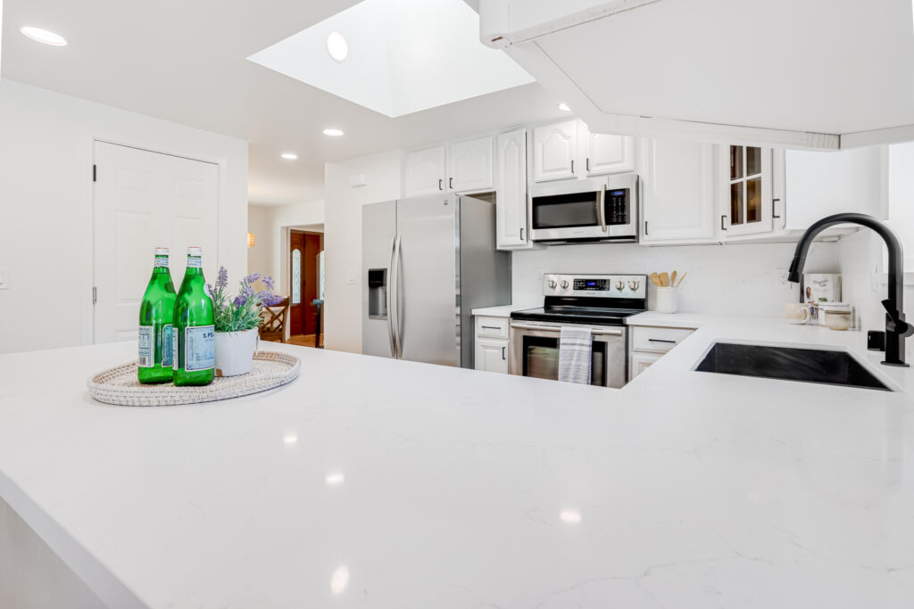 - Sleek quartz countertops with stainless steel undermount sink