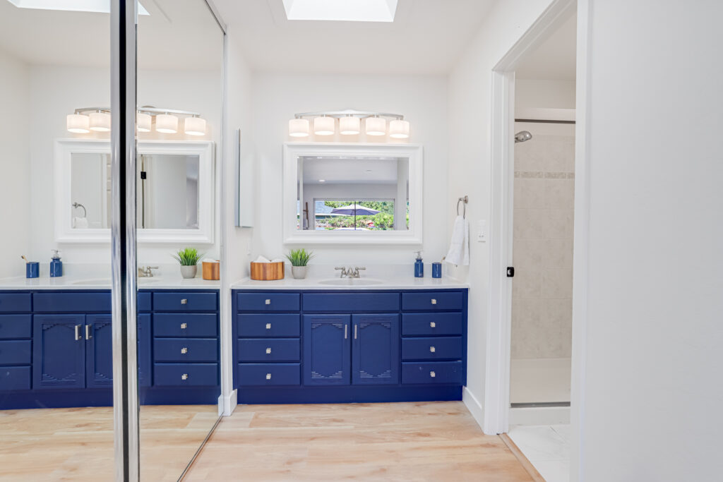 • Two large closets, built-in vanity, skylight, and sliding glass door to backyard - New water-proof SPC flooring throughout the home