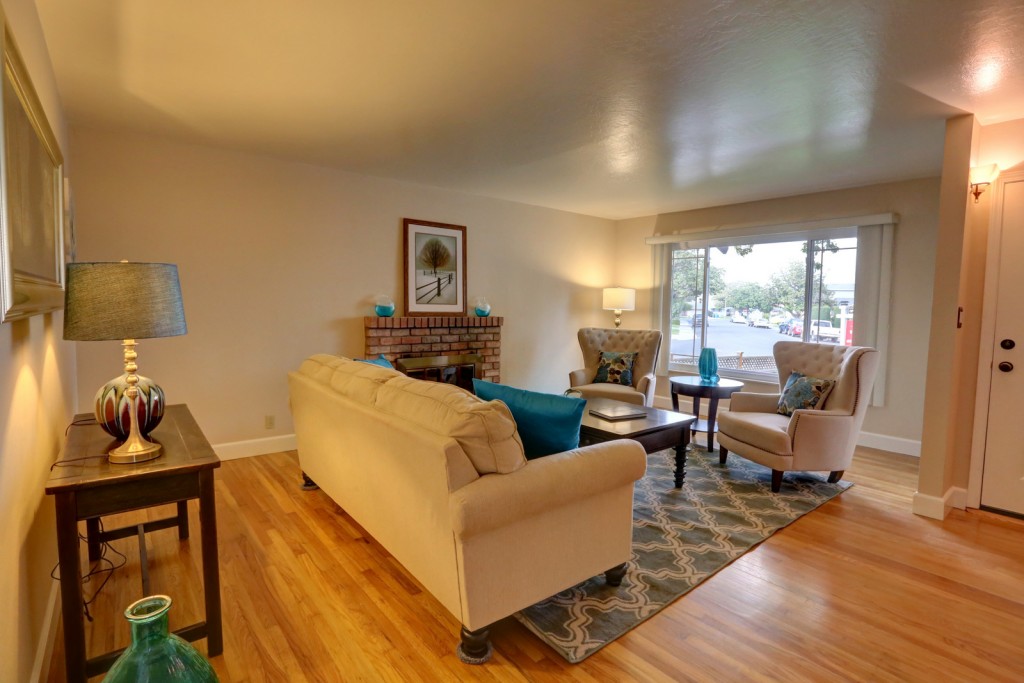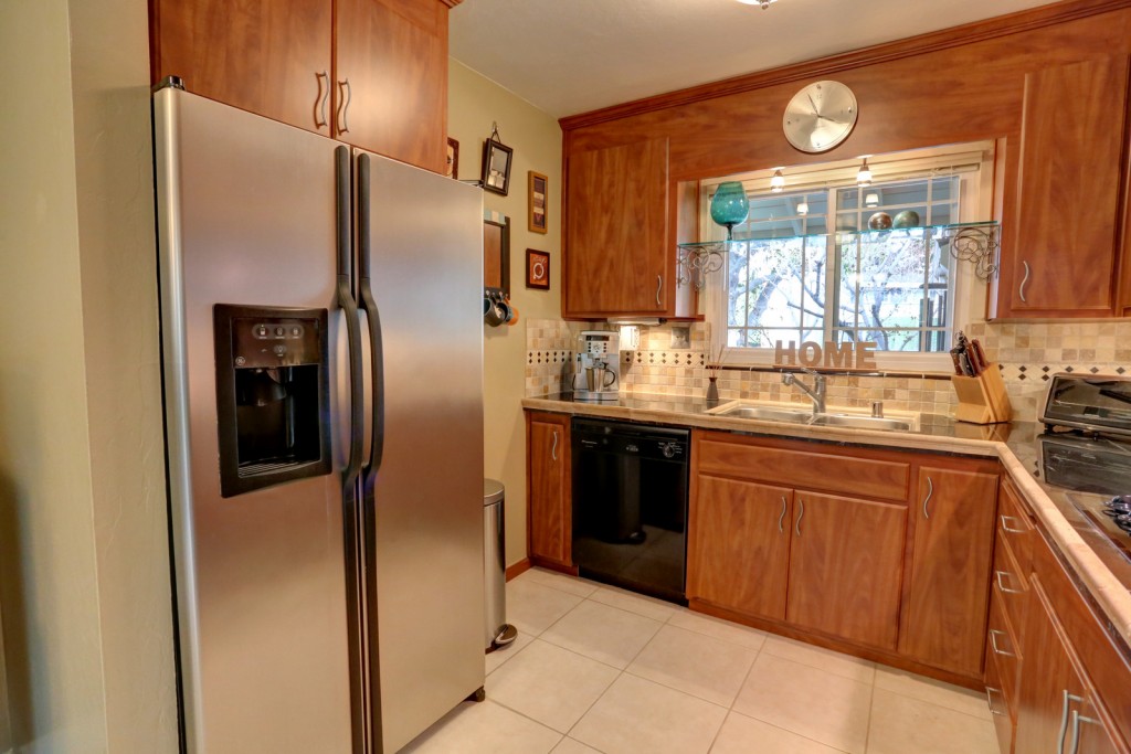 Wonderful Darvon Park home situated on a quite street and featuring a large lot with spacious backyard. This home features a large living room with hardwood flooring and brick fireplace. Spacious kitchen is updated with tile floors, newer cabinets and countertops, glass surface cooktop, dishwasher, and refrigerator. Backyard is large and features a covered patio overlooking a lawn area and side patio. Additional features include dual pane windows, central heating and air conditioning, 2 car garage with automatic opener, low maintenance front yard with synthetic lawn. Artificial turf in front yard & water conditioner added in 2015.