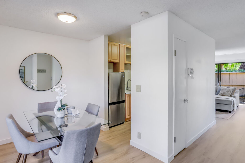 Updated 2-story end-unit situated in the desirable Woodsborough community within walking distance to Central Park, the public library, Santa Clara High, shops, restaurants, and access to Central Park Elementary. This bright floor plan features 2 bedrooms, 1.5 baths, and both a front and back patio for plenty of outdoor space. Additional features include updated kitchen and bathrooms, AC unit, new waterproof flooring throughout, and a wonderful location within the park-like complex, directly across from playground. Apartment-style washer/dryer can be installed with HOA approval. HOA includes water, gas, garbage, and plenty of amenities incl. three pools, game room, pool house, hot tub, men’s and women’s separate spas, laundry rooms, car-wash area, and two playgrounds. This convenient location is perfect for both work and entertainment, a short distance from Apple HQ, Nvidia, Valley Fair, and Santana Row. Don’t miss out on this move-in ready townhouse-style condo in a prime location!