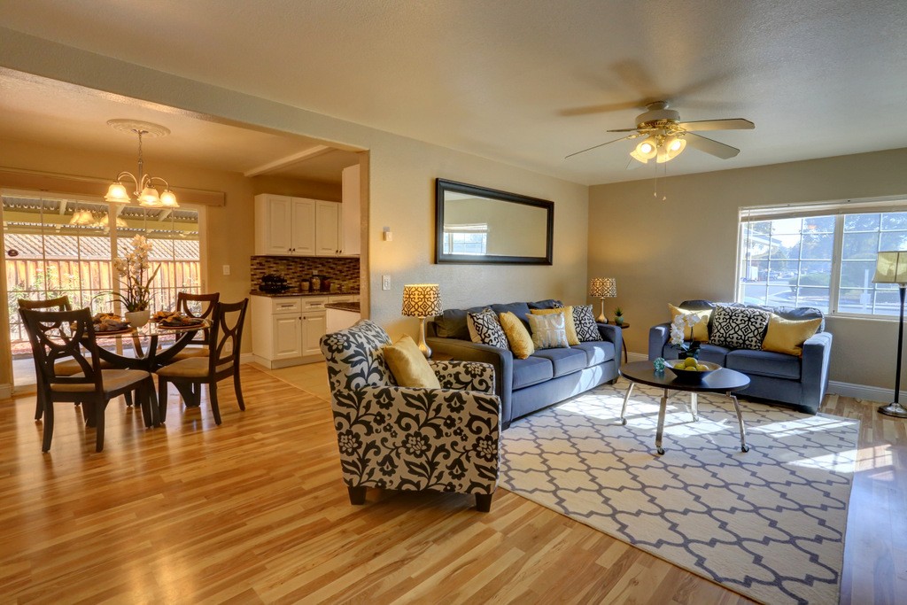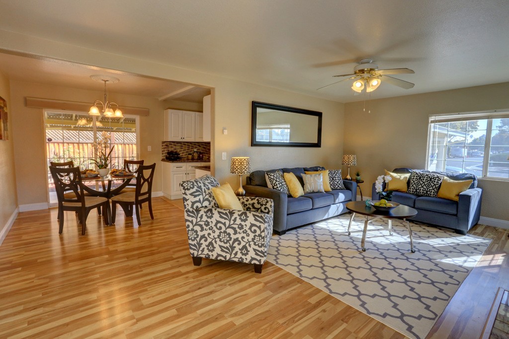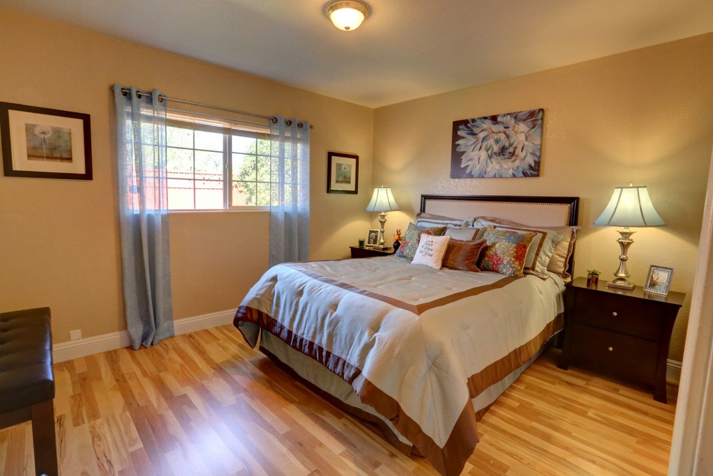 Well maintained and updated home in the Bower’s Crest neighborhood of Santa Clara with extra wide lot. Home features a spacious living room, eating area and large kitchen. Kitchen features include newer cabinets, tile floors, granite countertops, full tile backsplash, stainless steel appliances, and gas cooking. Baths are remodeled and feature tile flooring and newer fixtures. Other features include dual pane windows, laminate flooring, large covered patio and rear lawn with automatic sprinklers.
