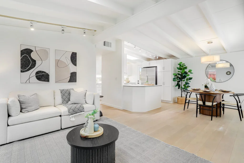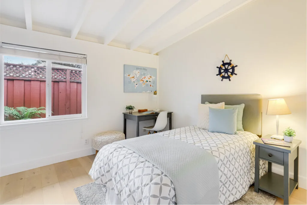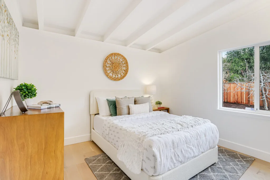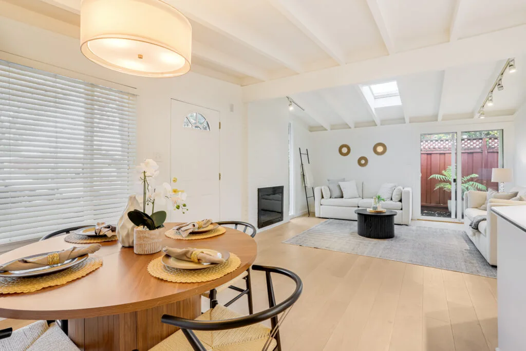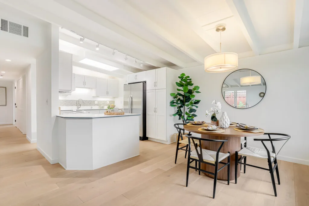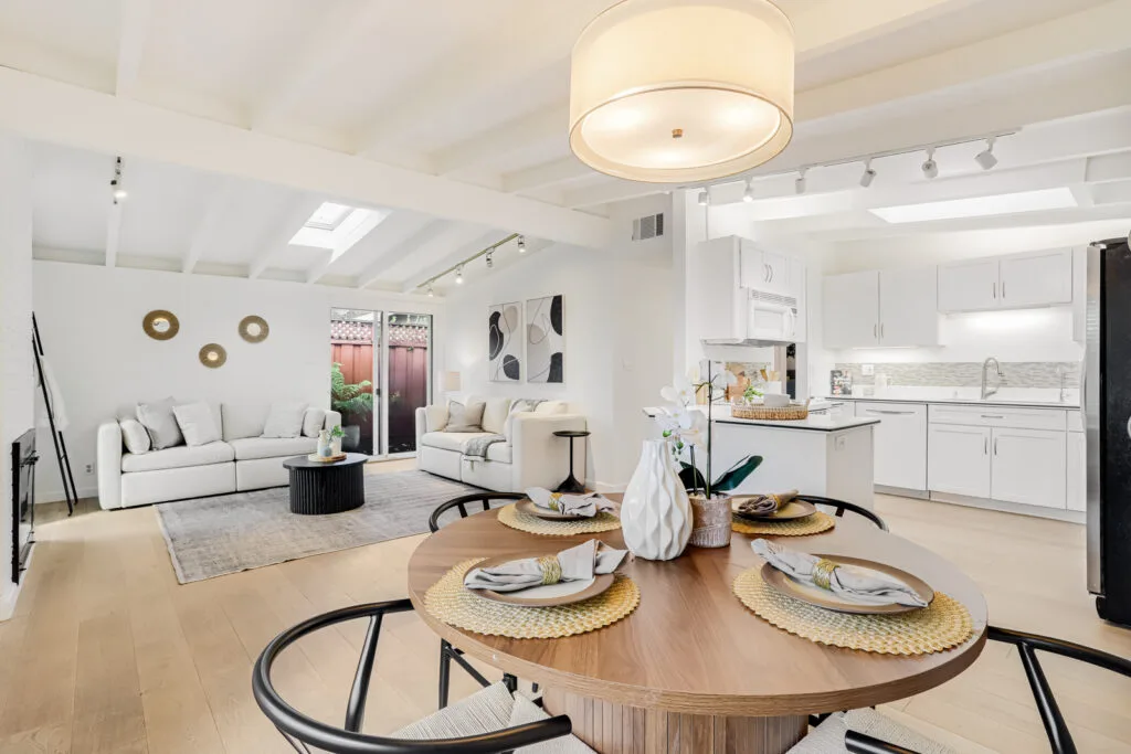 Nestled on a quiet cul-de-sac, this beautifully maintained home offers a bright and open floor plan upon entering the home. The kitchen flows seamlessly into the dining and living areas, offering easy access to the backyard through either a sliding glass door or a kitchen side door. The kitchen also boasts shaker-style cabinets, reverse osmosis water filtration, and plenty of counter space. The master bedroom suite provides privacy at the back of the home, and the in-unit laundry adds convenience. This home’s spacious backyard offers a tranquil outdoor space. Recent updates include fresh interior and exterior paint, new sod and sprinklers in the backyard, and a new back fence. Enjoy the luxury of engineered wood flooring, double-pane windows, an insulated roof, a tankless water heater, and central AC/heating. Its prime Santa Clara location is within walking distance of Homeridge Park and Sutter Elementary, as well as easy access to shopping, dining, and major tech companies like Apple and Nvidia.