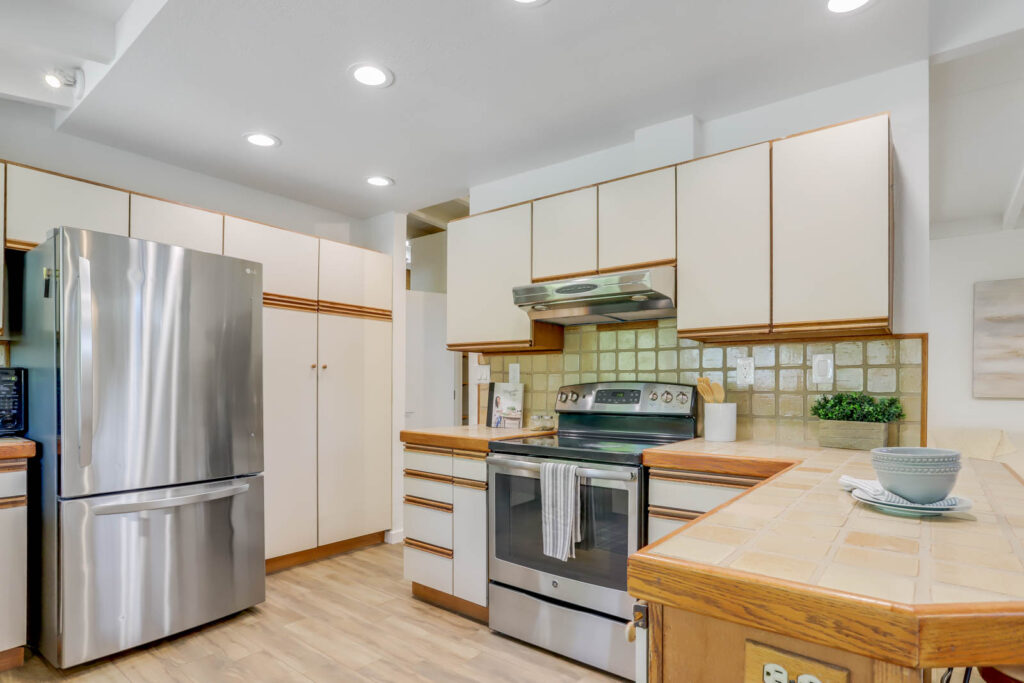 - Spacious kitchen features a breakfast bar and boasting an abundance of cabinet storage and countertop space