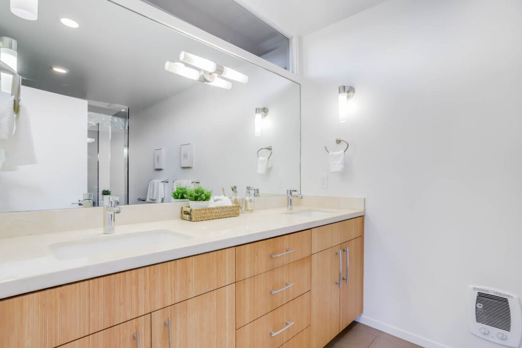 Updated mid-century modern home nestled on a serene, tree-lined street in Santa Clara features an oversized corner lot with 3BD/3BA plus a den and access to Cupertino’s top-rated schools (Eisenhower Elementary, Hyde Middle, Cupertino High). The interior of the home has been thoughtfully updated, featuring newly tiled floors equipped with cozy radiant heating. Throughout the house, exposed beam ceilings, skylights, and clerestory windows provide an indoor-outdoor feel. The 2 primary bedrooms feature modern en suites and private access to the backyard oasis. The front primary bedroom is complete with walk-in closet, private courtyard, and spacious en suite with Japanese-style soaking tub and washlet toilet. Outside, the meticulously landscaped yard is complete with a deck, perfect for leisurely evenings, a BBQ area for outdoor gatherings, and a patio for al fresco dining. Don’t miss out on the opportunity to own this move-in ready beauty in a safe and quiet, kid-friendly neighborhood!