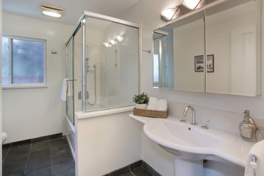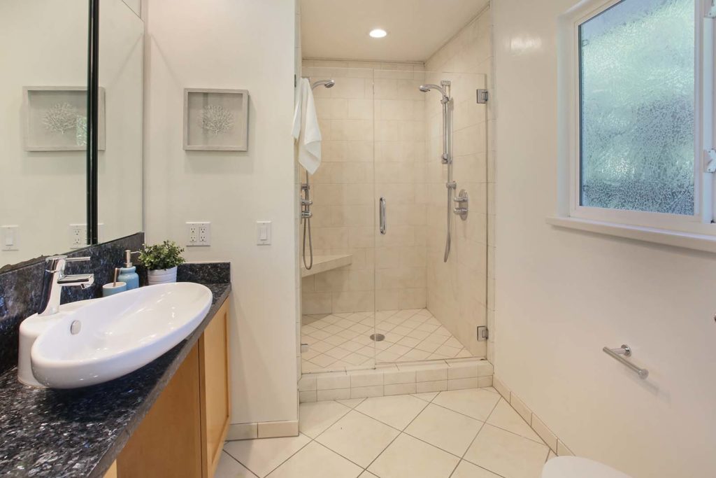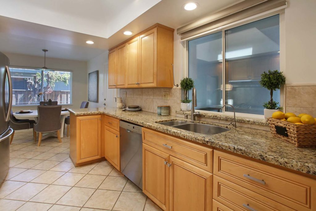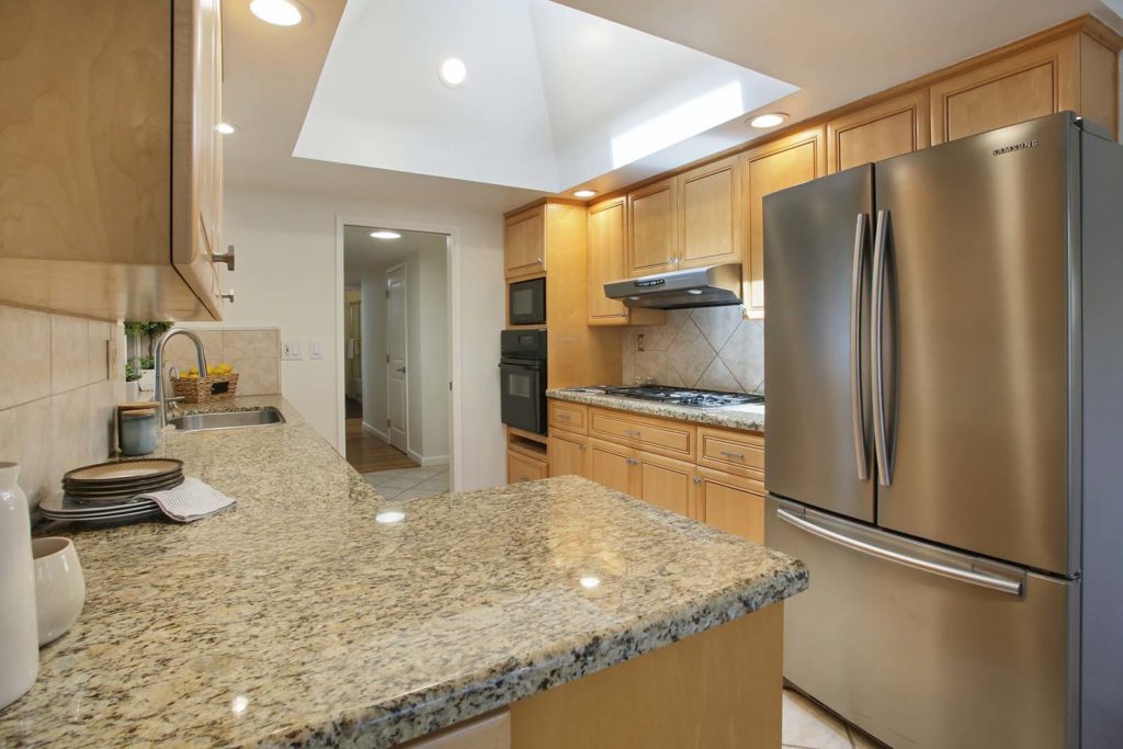 - Remodeled kitchen with custom frameless cabinetry, granite countertops, and large skylight
