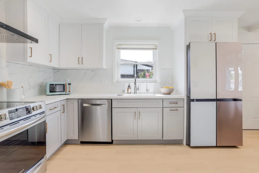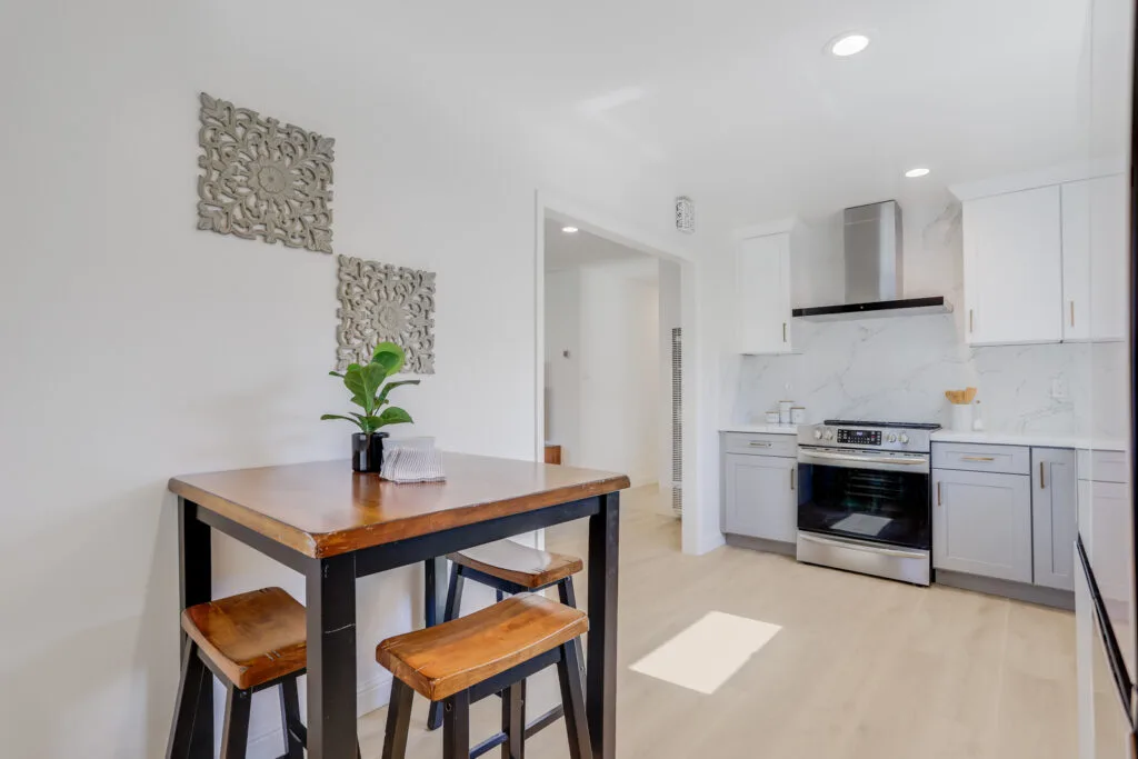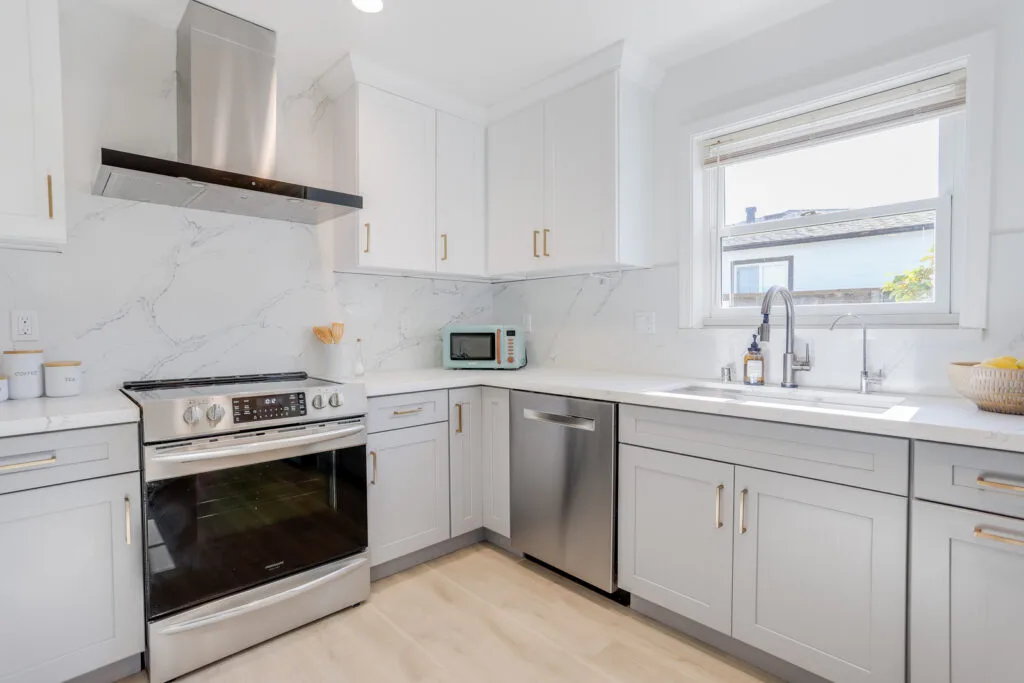 - Completely remodeled kitchen and bathrooms with all-new electronic appliances, updated flooring, and plumbing (2021)