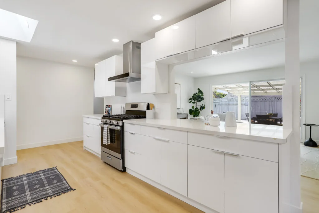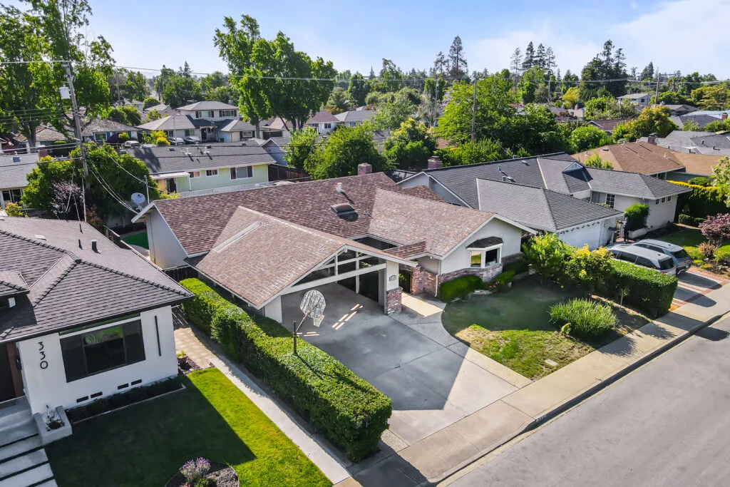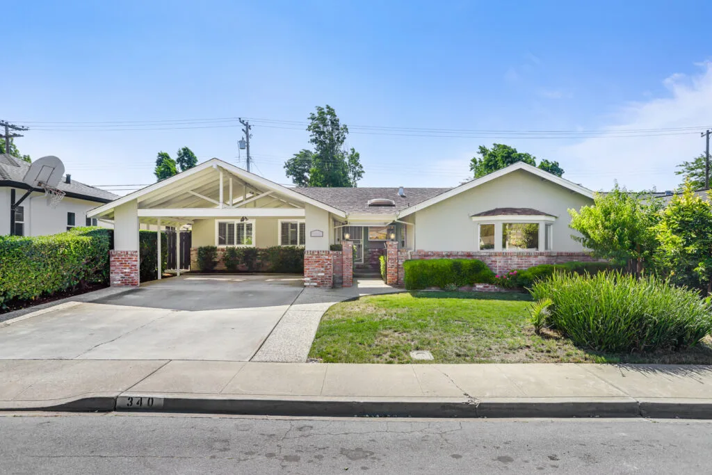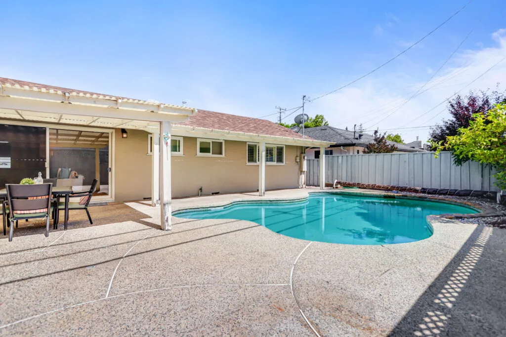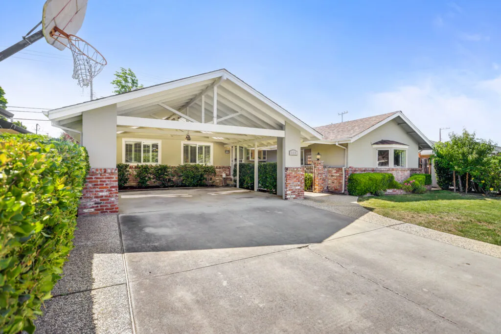 Cupertino Schools: Located on a quiet street in the Westwood Oaks neighborhood, this inviting residence is a bright, airy, and naturally lit home. The home features a separate oversized family room that has cathedral ceilings with exposed wood beams and an abundance of windows that exude natural light. Flowing seamlessly from the family room is the dedicated dining area and large renovated kitchen. The kitchen boasts modern high-gloss cabinets, sleek white-quartz countertops, and an oversized sink. The living room features a wood-burning fireplace and a large sliding glass door that opens to the backyard, where you’ll find a delightful covered patio, sparkling pool, and mature fruit trees. Retreat to the bedrooms, each featuring mirrored closet doors and charming plantation shutters, offering both privacy and a touch of sophistication. The updated bathrooms echo the home’s modern aesthetic with upgraded vanities and stylish tile work. The home also features fresh interior paint, new hardware, and updated lighting fixtures throughout. You will have the convenience of an inside laundry room, central heating and cooling, double-pane windows, and a two-car carport. Enjoy close proximity to beloved neighborhood parks like Westwood Oaks Park and Jenny Strand Park. Commuting is a breeze with easy access to major thoroughfares including Lawrence Expressway and Highway 280, and the home is just a stone’s throw from the campuses of Apple Park and NVIDIA.