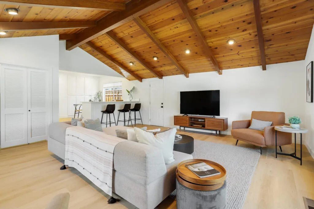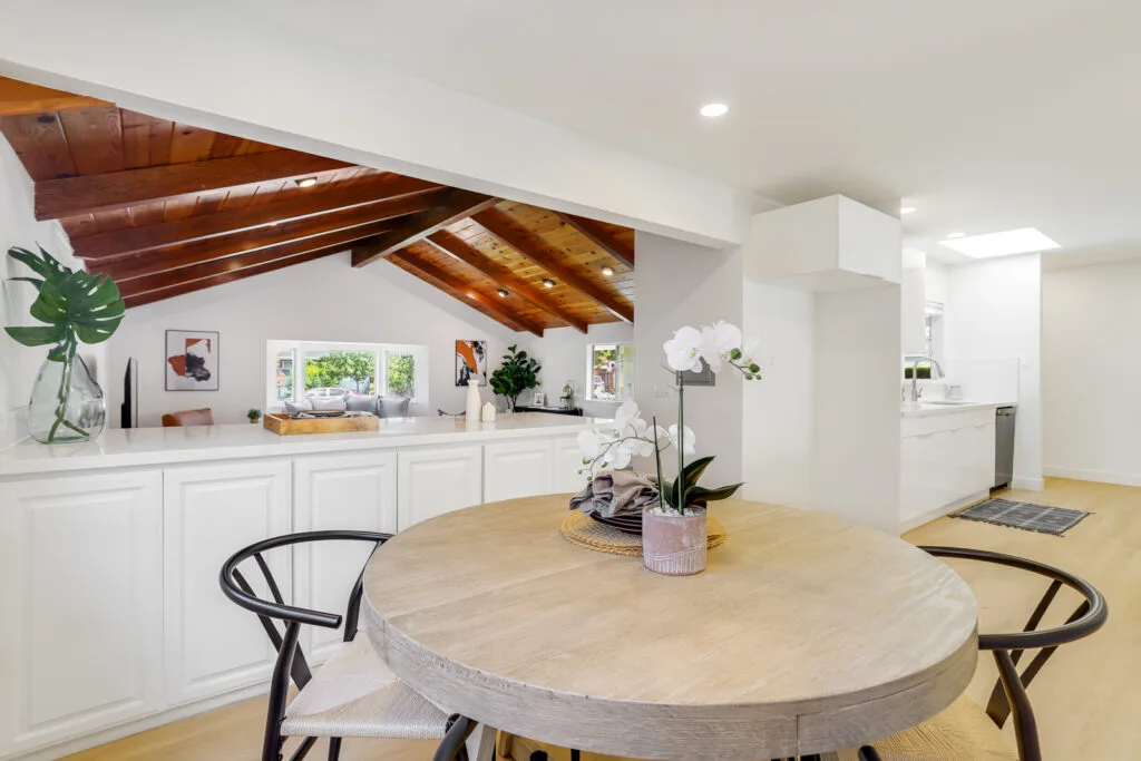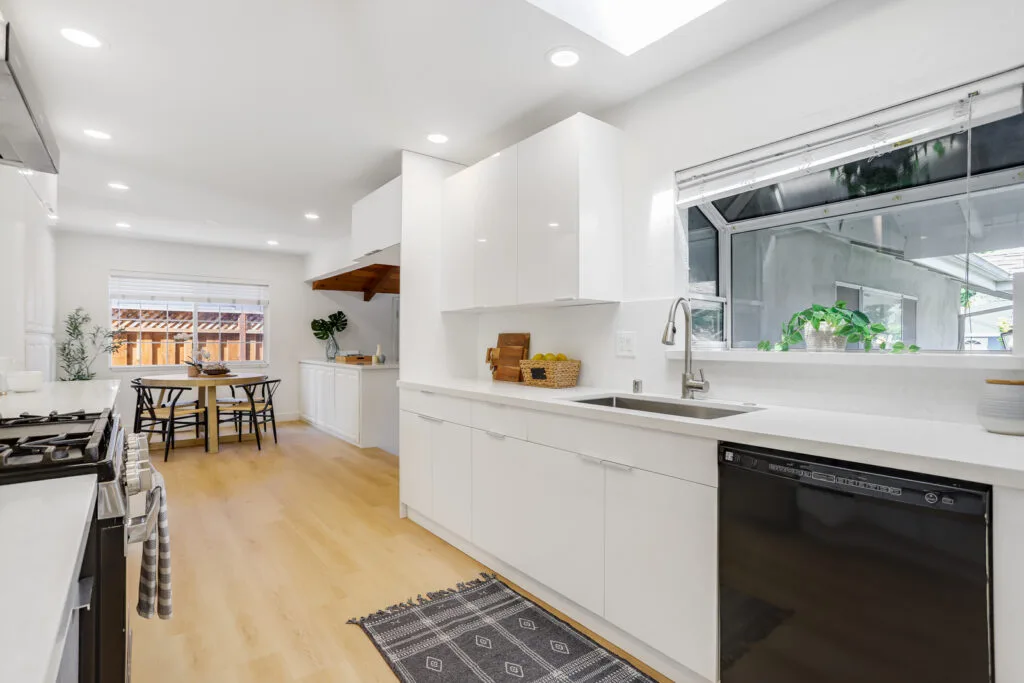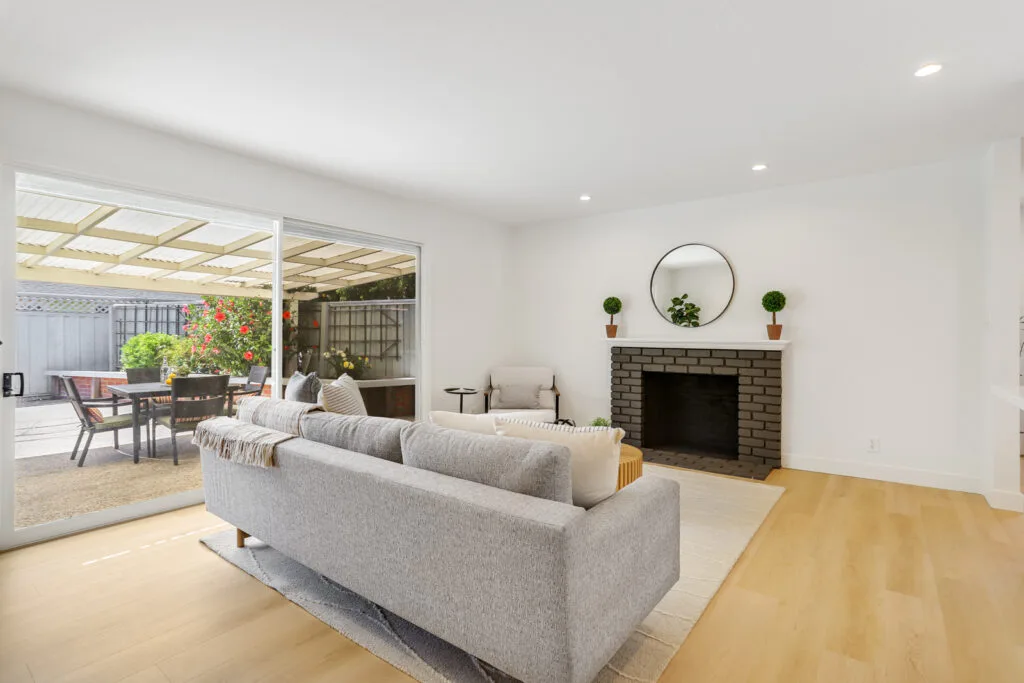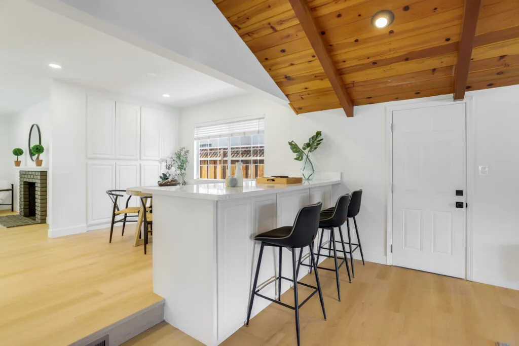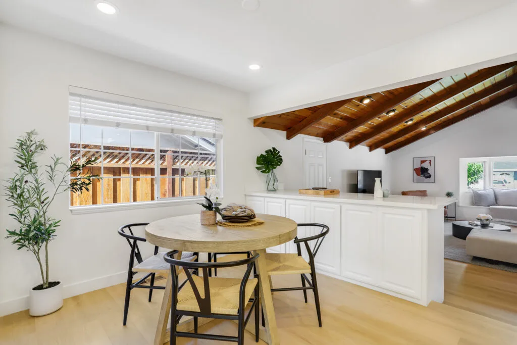 Cupertino Schools: Located on a quiet street in the Westwood Oaks neighborhood, this inviting residence is a bright, airy, and naturally lit home. The home features a separate oversized family room that has cathedral ceilings with exposed wood beams and an abundance of windows that exude natural light. Flowing seamlessly from the family room is the dedicated dining area and large renovated kitchen. The kitchen boasts modern high-gloss cabinets, sleek white-quartz countertops, and an oversized sink. The living room features a wood-burning fireplace and a large sliding glass door that opens to the backyard, where you’ll find a delightful covered patio, sparkling pool, and mature fruit trees. Retreat to the bedrooms, each featuring mirrored closet doors and charming plantation shutters, offering both privacy and a touch of sophistication. The updated bathrooms echo the home’s modern aesthetic with upgraded vanities and stylish tile work. The home also features fresh interior paint, new hardware, and updated lighting fixtures throughout. You will have the convenience of an inside laundry room, central heating and cooling, double-pane windows, and a two-car carport. Enjoy close proximity to beloved neighborhood parks like Westwood Oaks Park and Jenny Strand Park. Commuting is a breeze with easy access to major thoroughfares including Lawrence Expressway and Highway 280, and the home is just a stone’s throw from the campuses of Apple Park and NVIDIA.