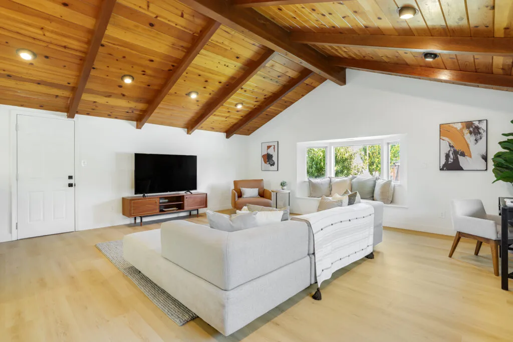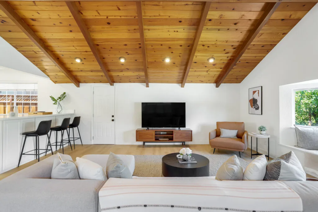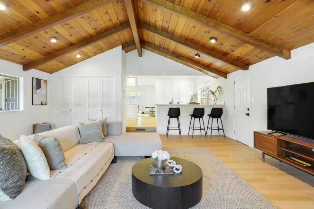 • Cathedral ceiling with exposed beams