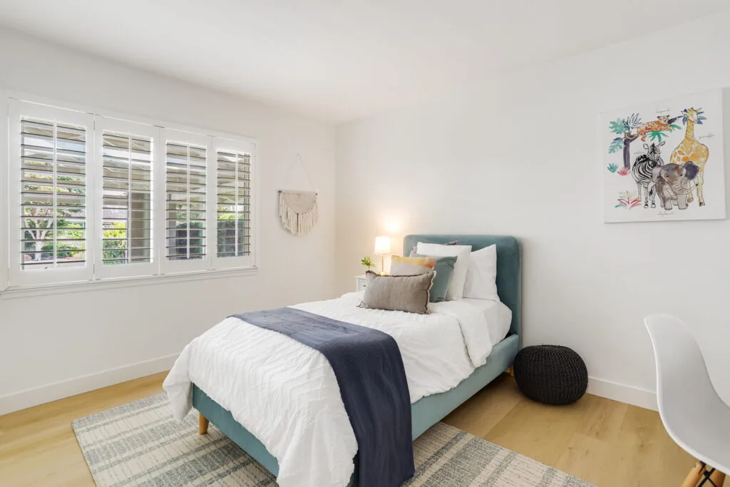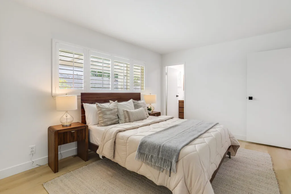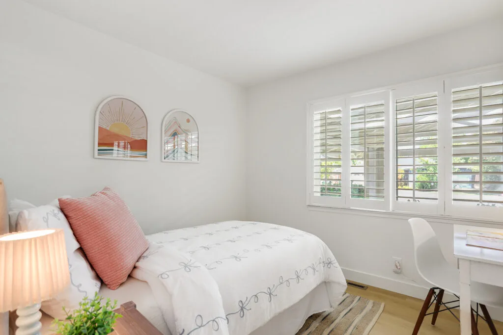 - Plantation shutters in bedrooms