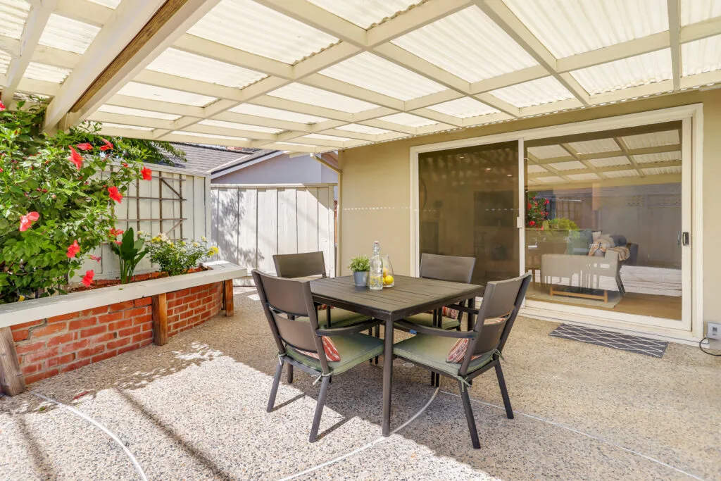 - Large sliding glass door leading to the backyard