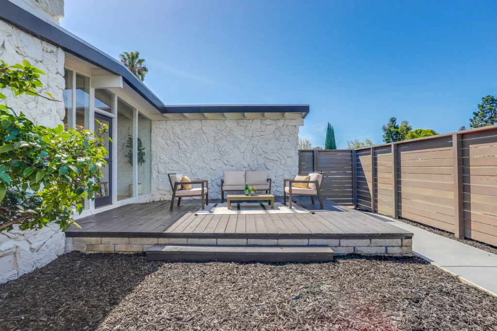 Step into this beautifully updated home that seamlessly combines mid-century charm with contemporary elegance. The open floor plan is perfect for entertaining and everyday living, featuring a remodeled kitchen at its heart. The kitchen features shaker cabinets, stainless steel appliances, quartz countertops, and a backsplash. Both bathrooms have been tastefully remodeled, enhancing the home’s modern feel. Enjoy outdoor living with both front and rear patios, a spacious back and side yard, and a private courtyard perfect for relaxing or hosting gatherings. Every detail has been considered, from the new SPC flooring that creates a light & airy feel. Enjoy outdoor living on the front & rear patios, private courtyard, & spacious yard space. Additional upgrades include a new water heater, new LED lighting, an upgraded 200 AMP electrical panel, and a convenient two-car garage with an automatic opener. Don’t miss your chance to own a piece of history with modern updates!