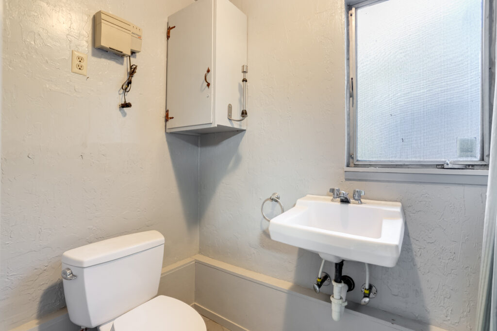• Half-bathroom located in the garage, ideal for workshop use or outdoor cleanup (permits unknown)