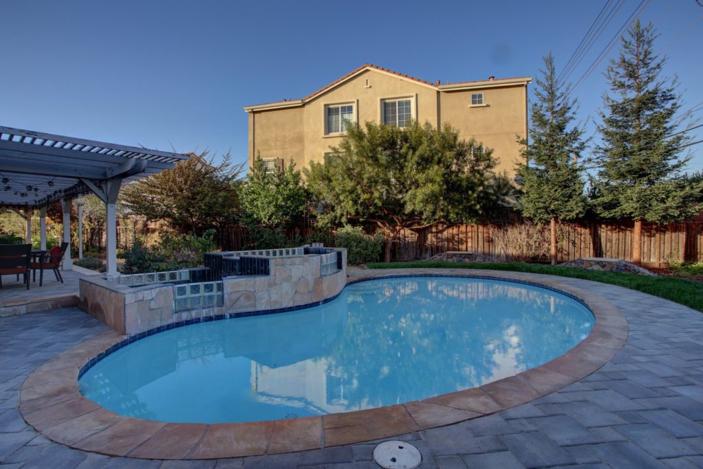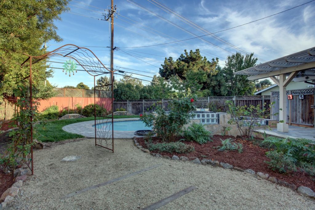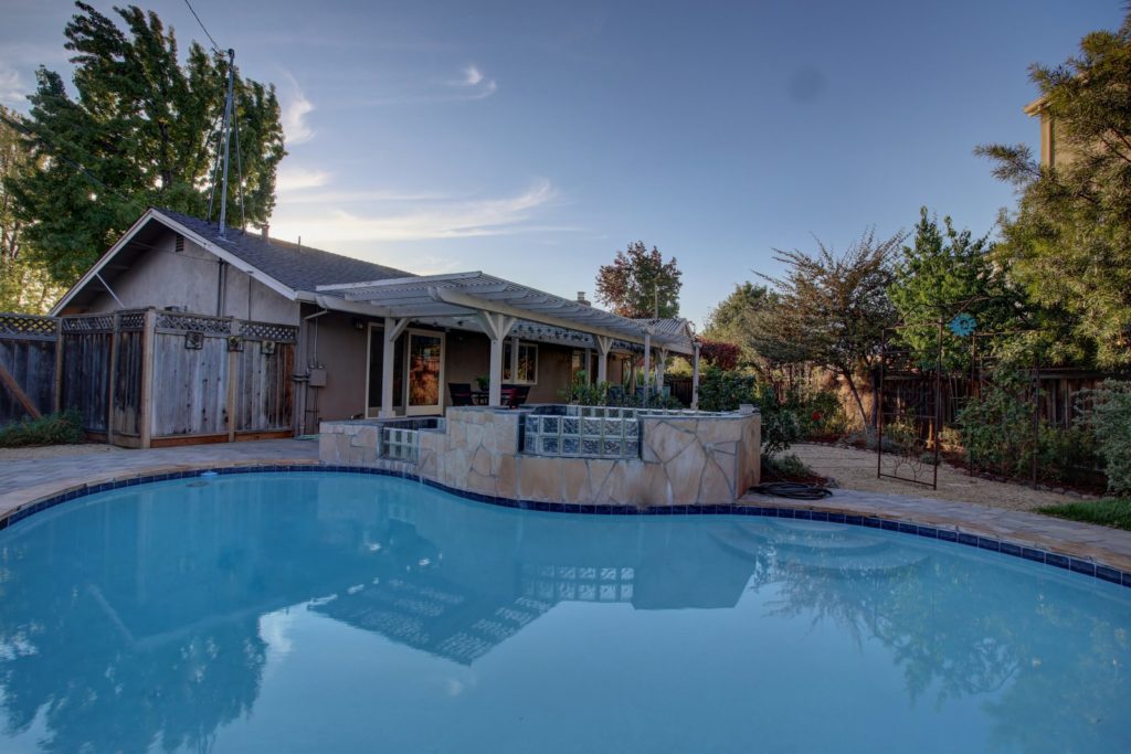 Beautifully updated throughout, Westwood Oaks home with CUPERTINO SCHOOLS features amazing backyard with wrap around covered patio, garden area, walkways, in-ground pool & fountain. Kitchen has shaker style cabinets, quartz countertops, porcelain tile floors, recessed LED lighting, gas range & high-quality stainless steel appliances. The living room has recessed lighting & Mendota remote controlled gas fireplace insert. Hall bath has tile floors, tub surround, & pedestal sink. Master bath has custom vanity, heated tile floor, and spacious shower with frameless glass door. Master bedroom has a large wall to wall closet with custom shelves and drawers. Beautiful Milgard sliding glass doors from the dining room, living room & master bedroom open to the exterior patio. Other features include dual pane windows, guest bedroom bay window seat, hardwood flooring, front & back automatic irrigation system, home perimeter drainage system.