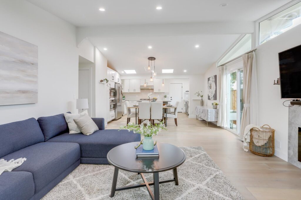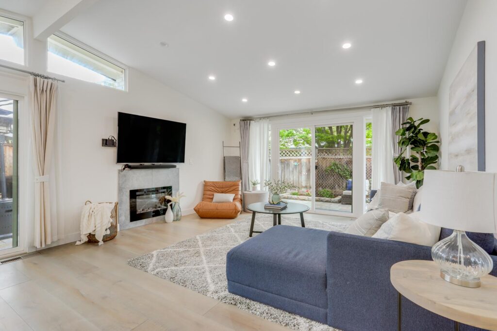 - Sliding glass doors on two sides for seamless indoor-outdoor flow to side yard and backyard