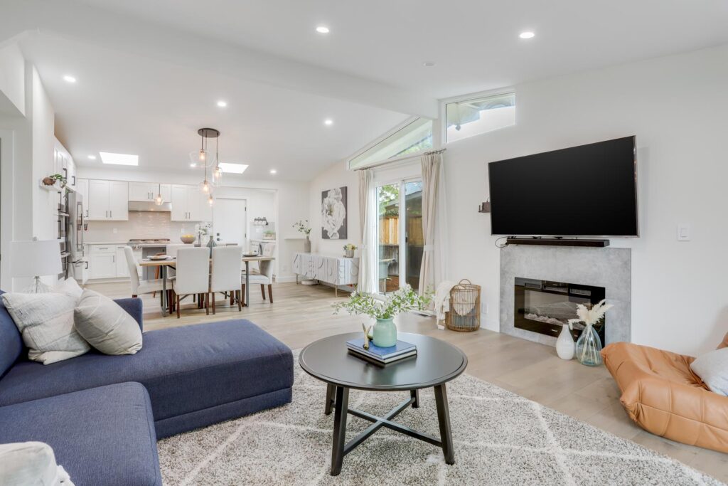 Fully remodeled modern home offers a bright and open living space in a desirable cul-de-sac location with access to Cupertino schools. The bright and airy great room features a vaulted ceiling and clerestory windows that flood the space with natural light, while the fireplace adds warmth & ambiance. Sliding glass doors on 2 sides open seamlessly to the side yard & backyard, creating a perfect indoor-outdoor flow. The entertainer’s dream kitchen boasts a large island and is outfitted with brand new appliances, including a 36” Kraus apron sink, a built-in Bosch oven and microwave, a 36” KitchenAid cooktop, and Vent A Hood range. Updated bathrooms feature frameless glass enclosures & large vanities with modern quartz countertops. A professionally landscaped backyard invites relaxation & outdoor entertaining. Enjoy evenings under the pergola or gather on the expansive paver patio. The side yard offers possibilities for outdoor dining. Additional upgrades include new copper plumbing, new sewer lines, additional insulation, a whole-house water softener system, a reverse osmosis system, and a finished garage with flooring, AC, a Tesla charger, recessed lighting, and a closet. The home is also close to major tech employers like Apple and the vibrant shopping and dining options of Valley Fair and Santana Row!