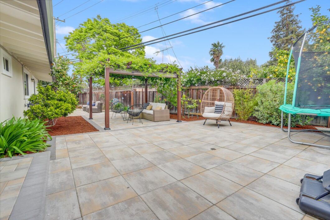 Fully remodeled modern home offers a bright and open living space in a desirable cul-de-sac location with access to Cupertino schools. The bright and airy great room features a vaulted ceiling and clerestory windows that flood the space with natural light, while the fireplace adds warmth & ambiance. Sliding glass doors on 2 sides open seamlessly to the side yard & backyard, creating a perfect indoor-outdoor flow. The entertainer’s dream kitchen boasts a large island and is outfitted with brand new appliances, including a 36” Kraus apron sink, a built-in Bosch oven and microwave, a 36” KitchenAid cooktop, and Vent A Hood range. Updated bathrooms feature frameless glass enclosures & large vanities with modern quartz countertops. A professionally landscaped backyard invites relaxation & outdoor entertaining. Enjoy evenings under the pergola or gather on the expansive paver patio. The side yard offers possibilities for outdoor dining. Additional upgrades include new copper plumbing, new sewer lines, additional insulation, a whole-house water softener system, a reverse osmosis system, and a finished garage with flooring, AC, a Tesla charger, recessed lighting, and a closet. The home is also close to major tech employers like Apple and the vibrant shopping and dining options of Valley Fair and Santana Row!