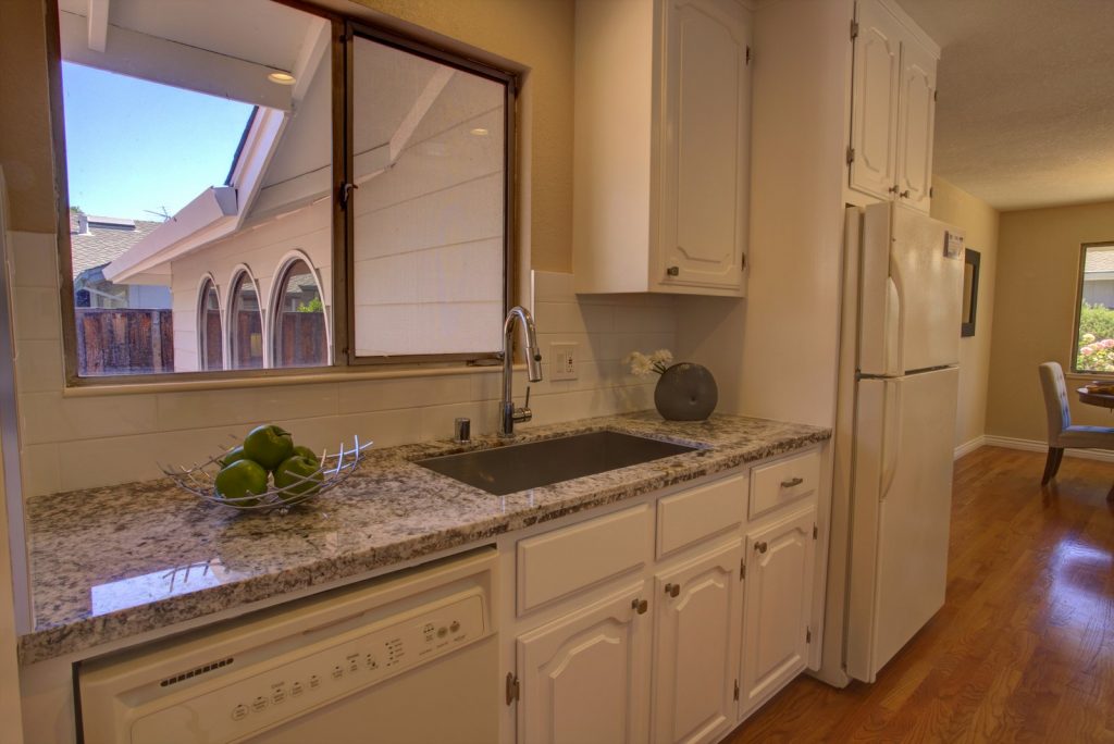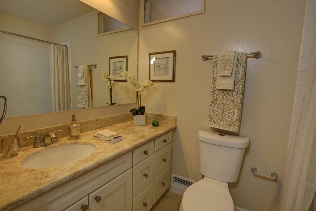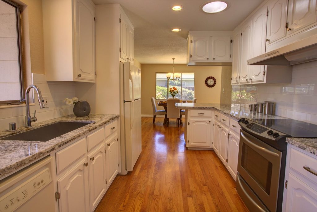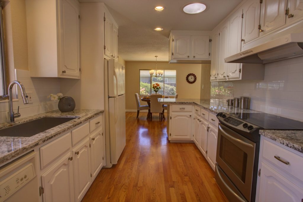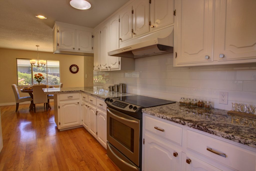 Expanded and bright Westwood Oaks home situated on a quiet street. This home has been beautifully maintained and updated and features a spacious kitchen and eating area, large living room and separate family room. Kitchen features granite slab countertops, full tile backspash, LED recessed lighting, and stainless steel electric range and dishwasher. Living room is spacious and features a beautiful tiled fireplace and large sliding glass door overlooking the backyard. Master bedroom is spacious and features a large closet and remodeled private bath with travertine tiled floors and shower enclosure. Home also features a large family room overlooking the backyard and front courtyard, with vintage style free standing fireplace. Other features include refinished oak hardwood flooring, new baseboard, approximately 10 year old dimensional composition roof, private courtyard, central AC and two car garage with built-in storage and automatic opener.