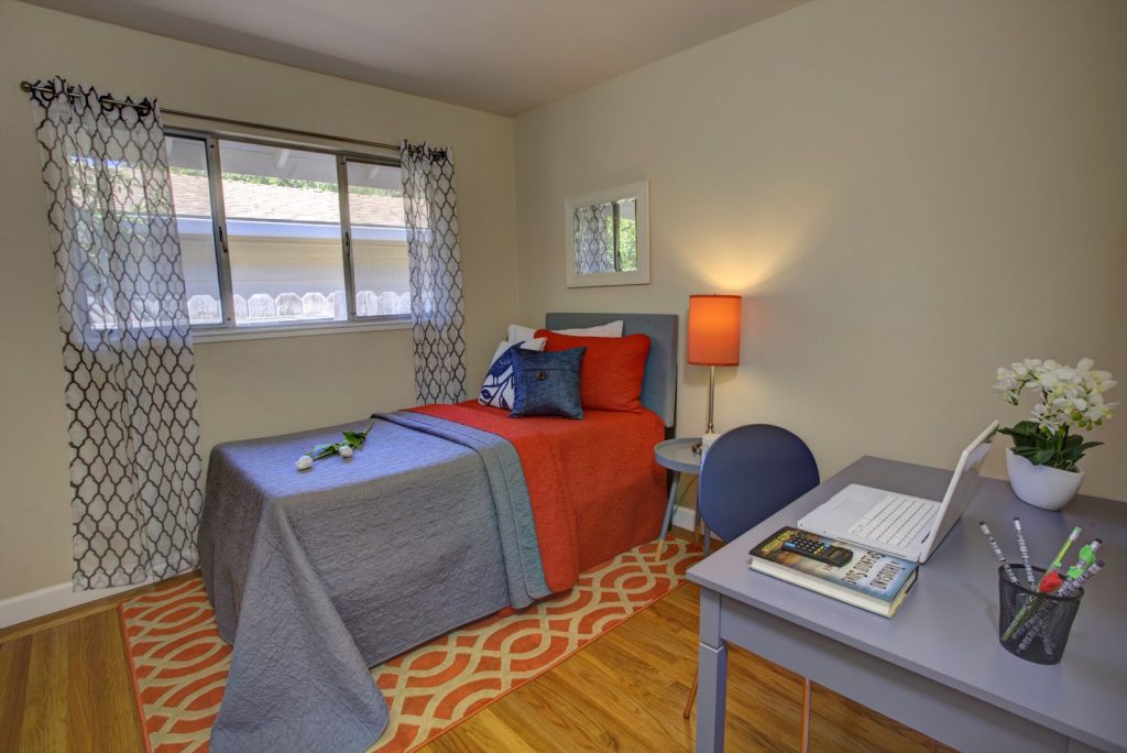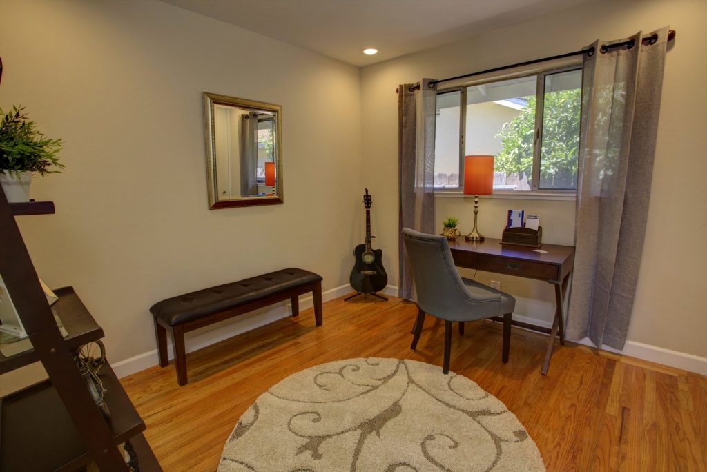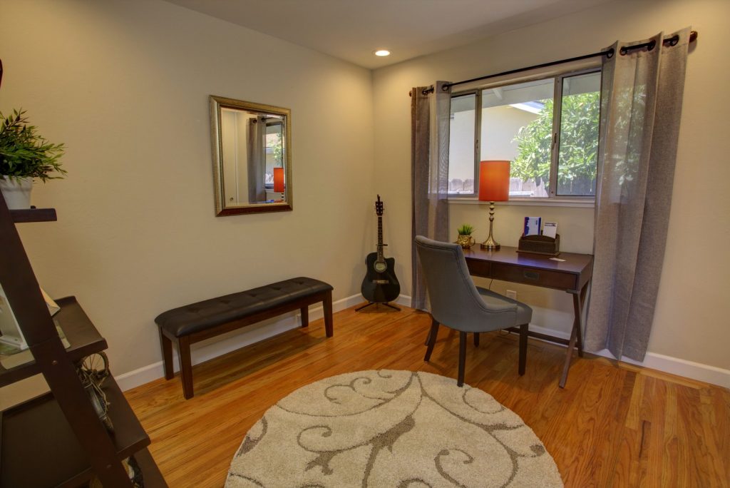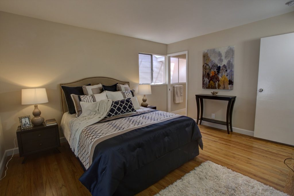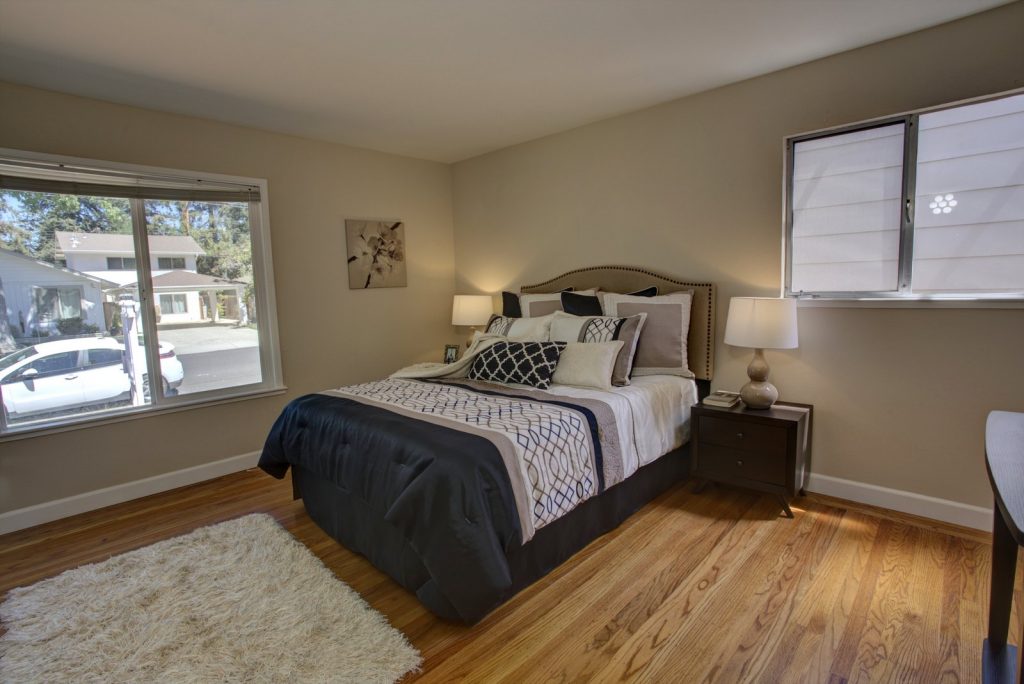 Expanded and bright Westwood Oaks home situated on a quiet street. This home has been beautifully maintained and updated and features a spacious kitchen and eating area, large living room and separate family room. Kitchen features granite slab countertops, full tile backspash, LED recessed lighting, and stainless steel electric range and dishwasher. Living room is spacious and features a beautiful tiled fireplace and large sliding glass door overlooking the backyard. Master bedroom is spacious and features a large closet and remodeled private bath with travertine tiled floors and shower enclosure. Home also features a large family room overlooking the backyard and front courtyard, with vintage style free standing fireplace. Other features include refinished oak hardwood flooring, new baseboard, approximately 10 year old dimensional composition roof, private courtyard, central AC and two car garage with built-in storage and automatic opener.