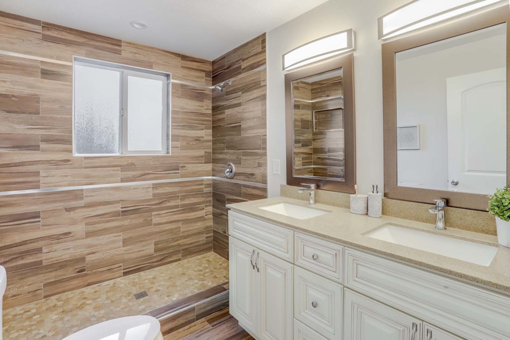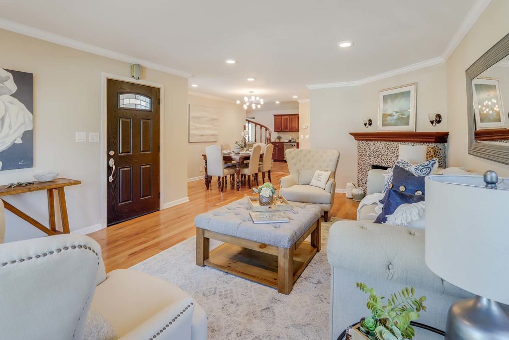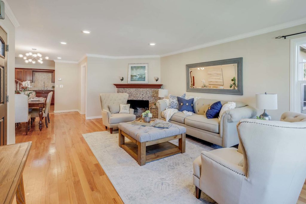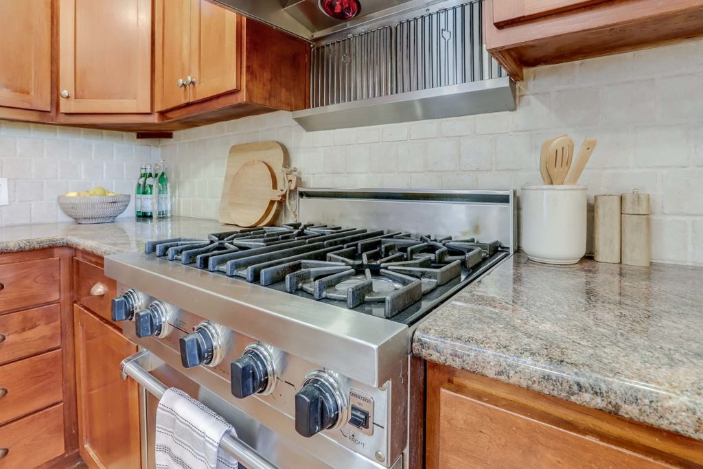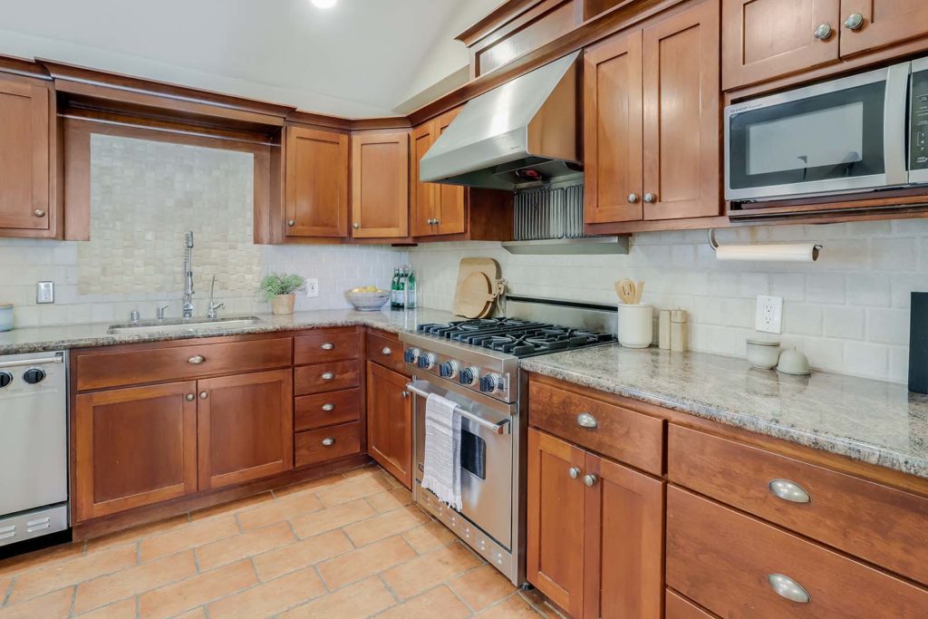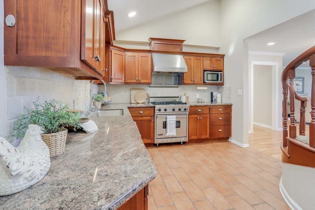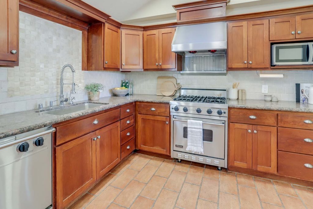 - Updated entertainer’s kitchen features 2 massive skylights, vaulted ceilings, granite countertops, and top Viking appliances