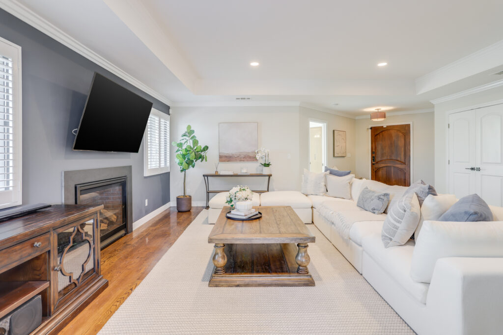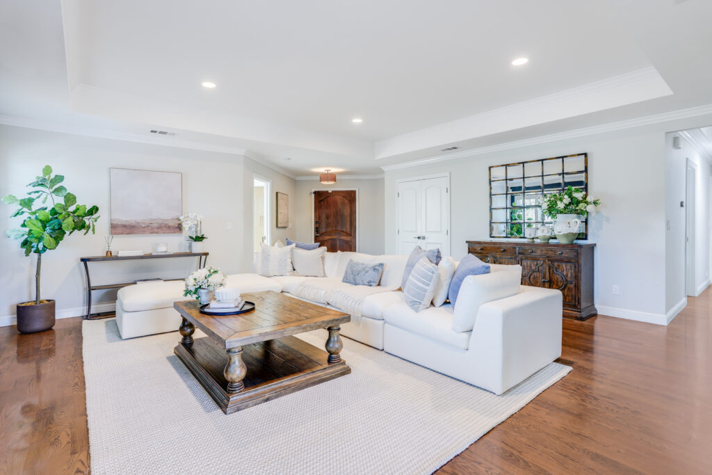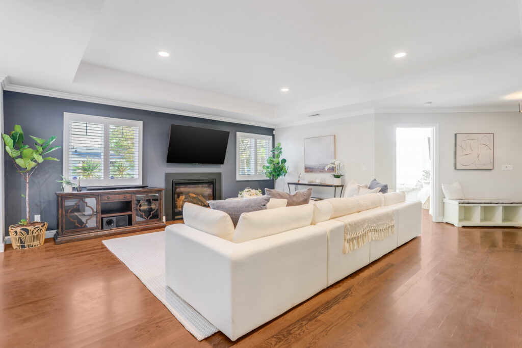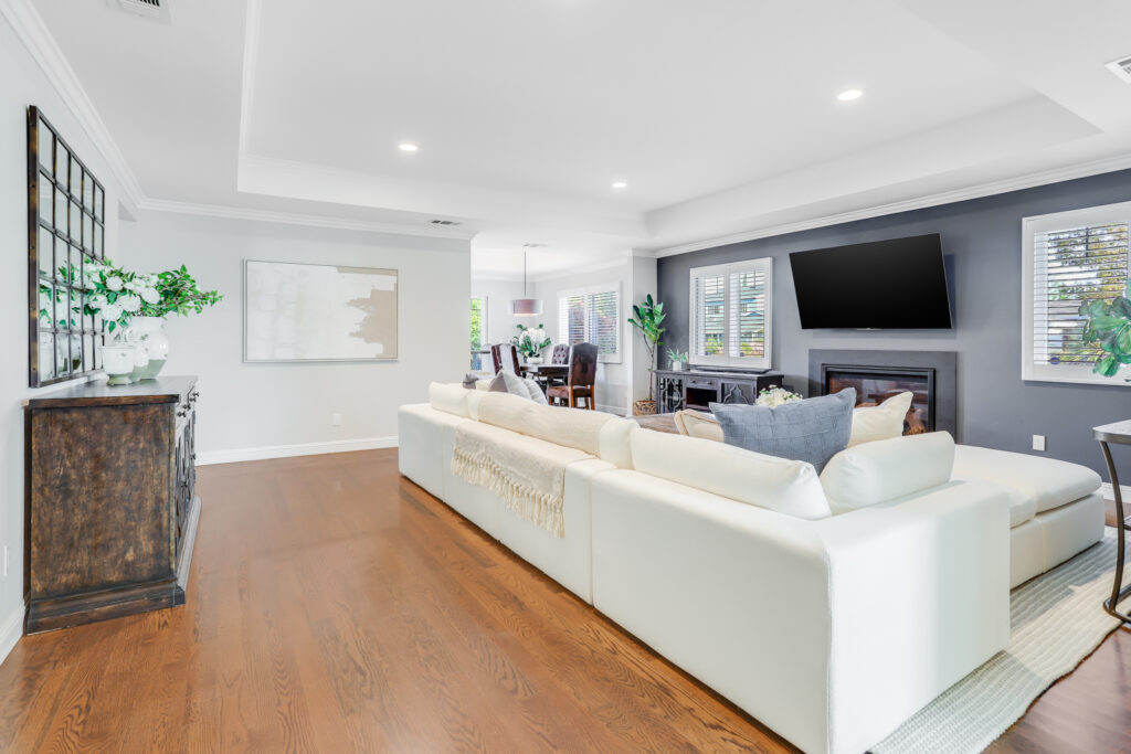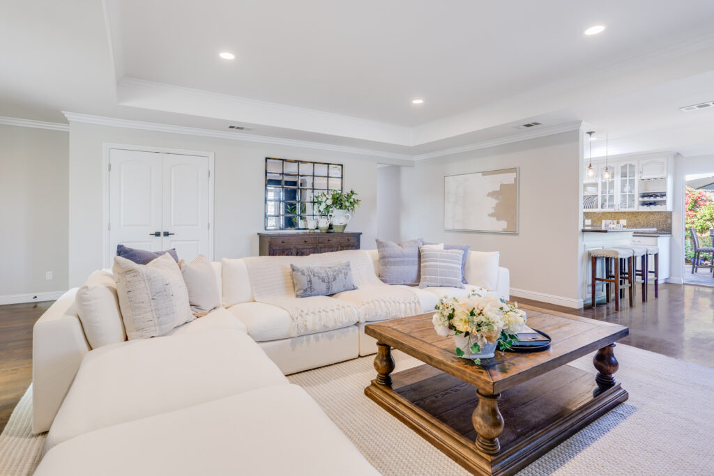 - Spacious family room with coffered ceiling
