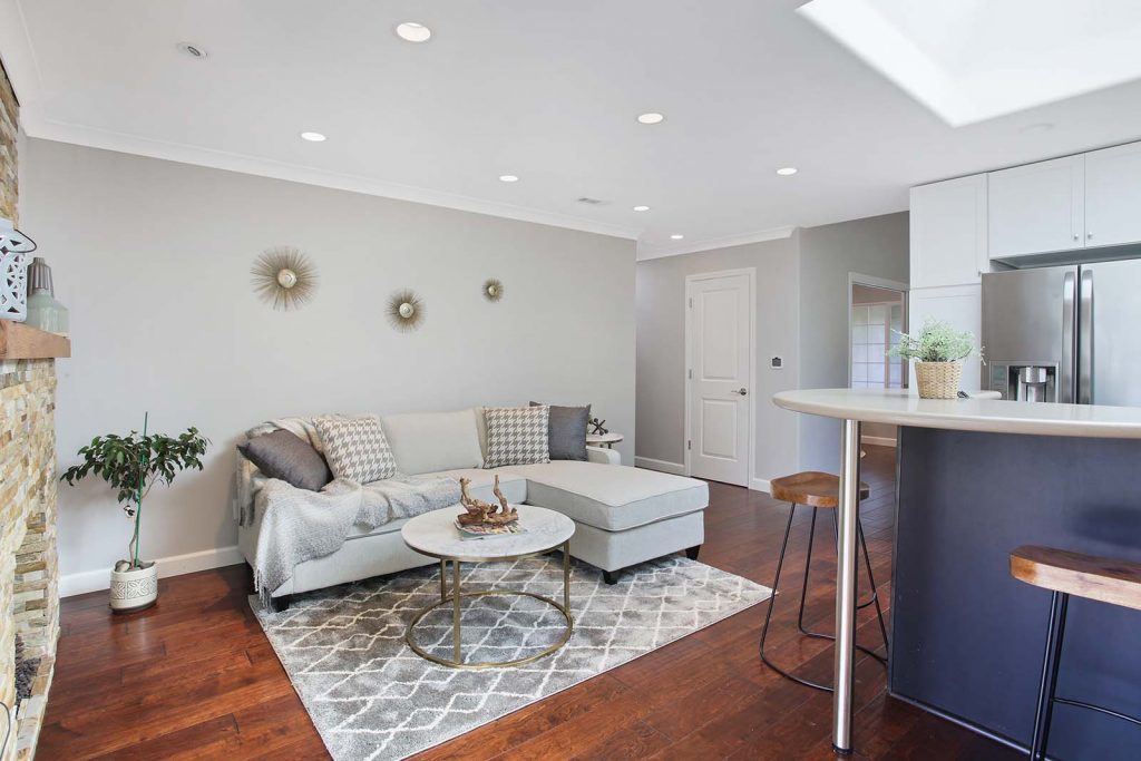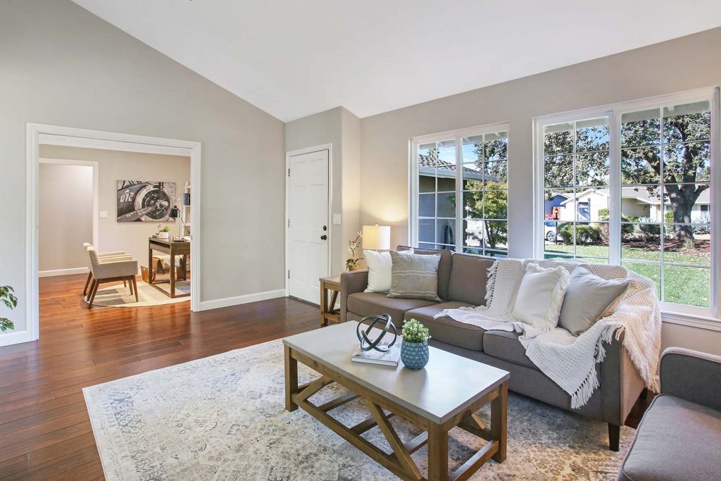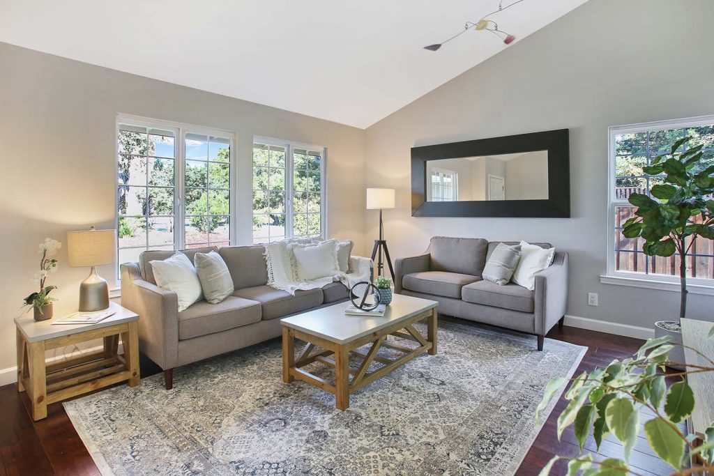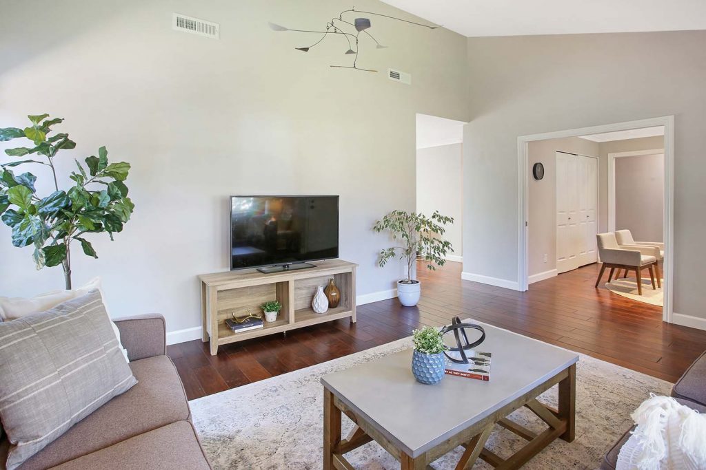 - Vaulted living room ceiling