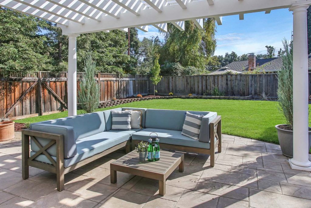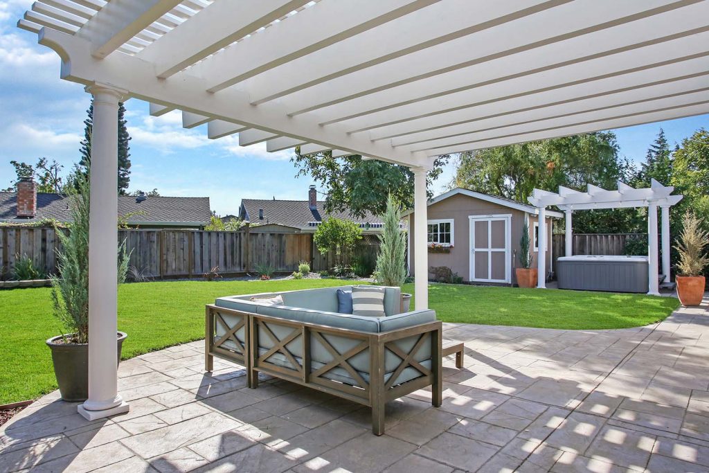 - Majestic dual outdoor white pergolas in the back