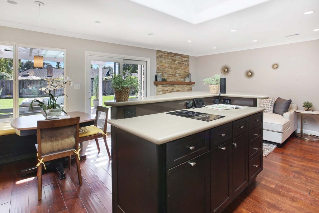 - Large kitchen island with bar top