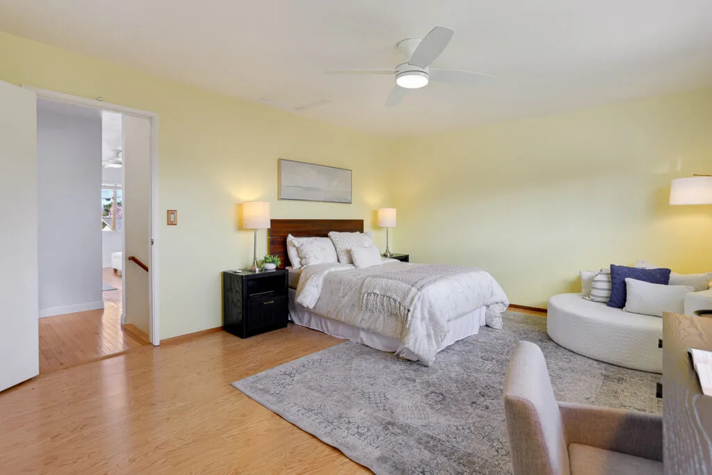 Nestled on a quiet street in a premier neighborhood, this versatile residence offers the perfect blend of charm and modern living. The heart of the home is a stunning living room featuring floor-to-ceiling windows that bathe the rich wood floors in natural light. A dedicated family room, anchored by a cozy fireplace and sliding glass doors, leads seamlessly to a large backyard patio area—an ideal setting for outdoor dining and entertaining. The main level features three bedrooms, including a primary suite with a walk-in shower, complemented by a dining area off the kitchen. Modern essentials include central heating and cooling, dual-pane windows, a recently replaced electrical panel, and an attached 2-car garage with auto remote. A standout feature is the spacious upstairs unit with a full bathroom. This flexible space offers a rare opportunity for multi-generational living, a home office, or a high-yield ADU, with potential for a kitchen and separate entrance to be added. Enjoy walking distance to Sutter Elementary, Maywood Park, and Kaiser Hospital. A short 5–10 minute drive puts you at Apple Park, Santana Row, and NVIDIA. Plus, take advantage of Santa Clara’s low-cost Silicon Valley Power utility rates!