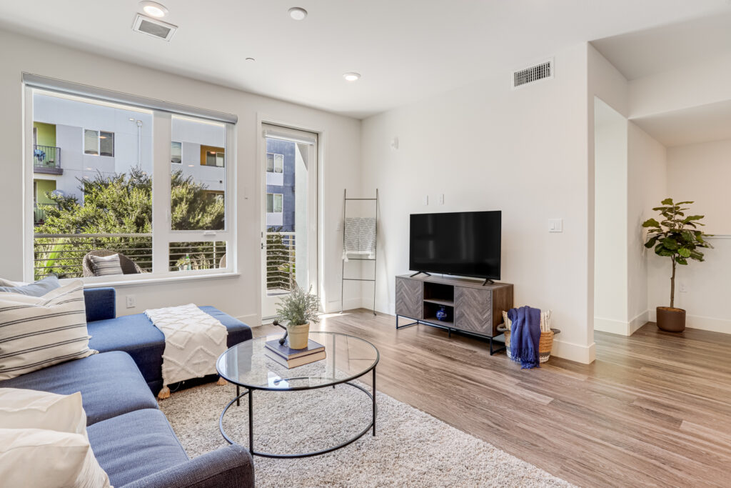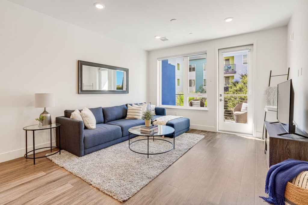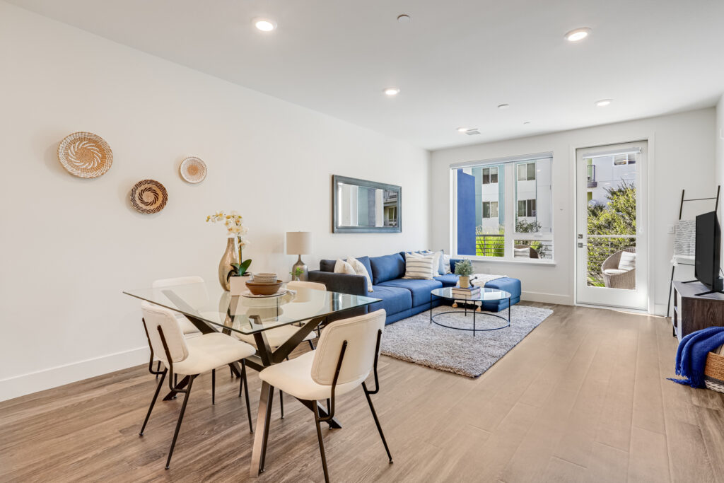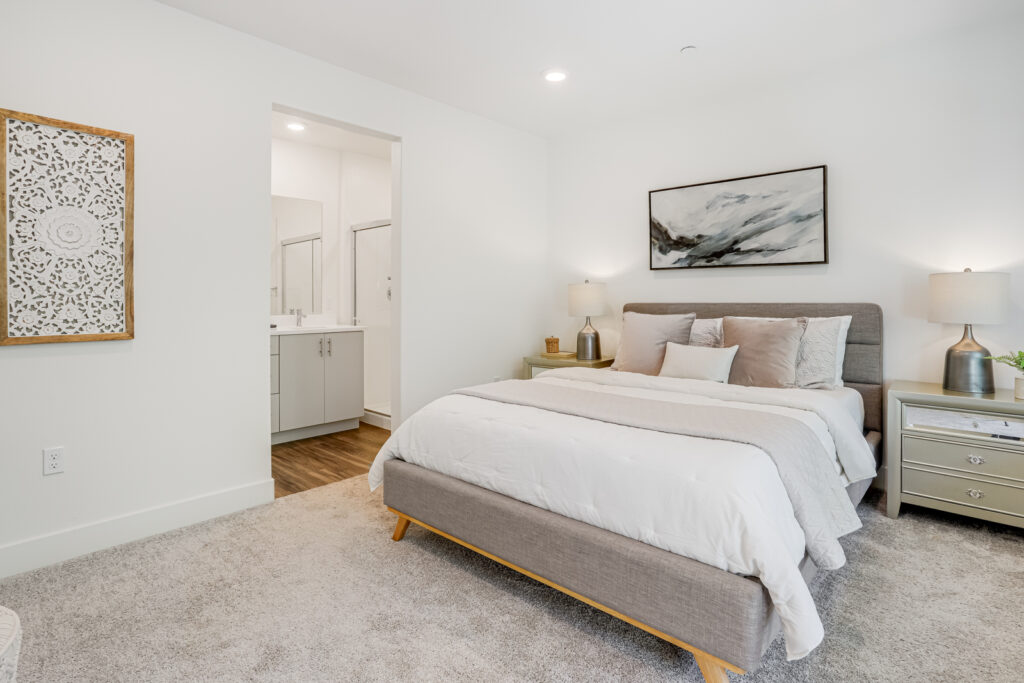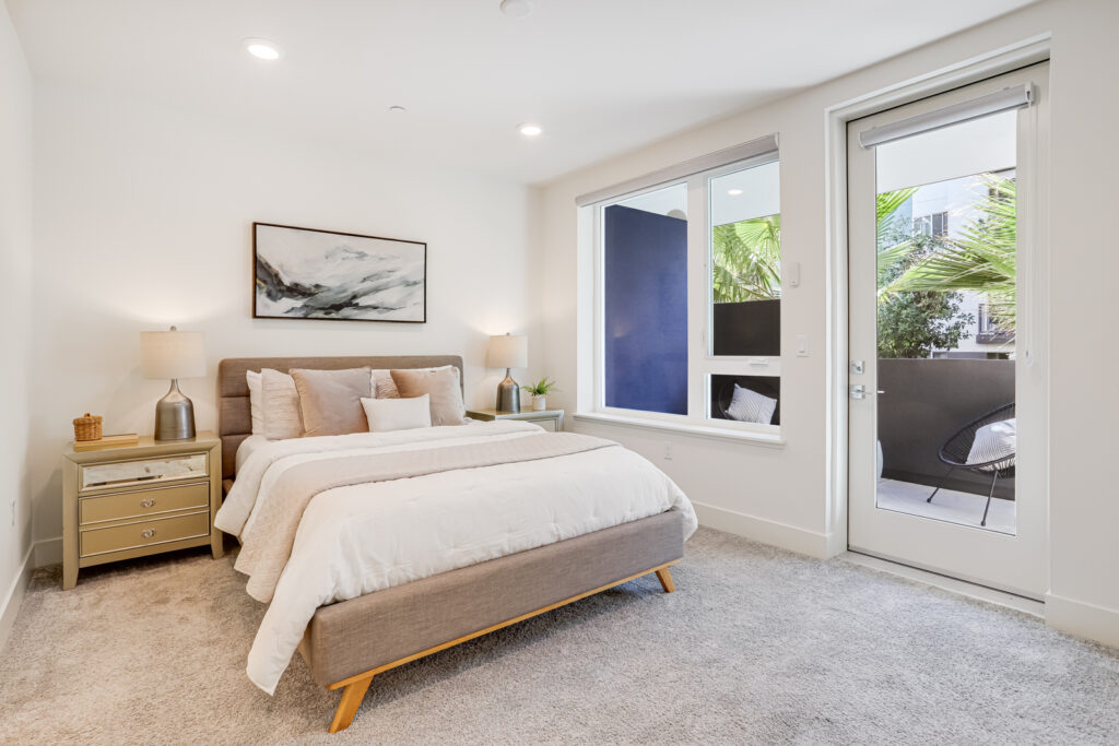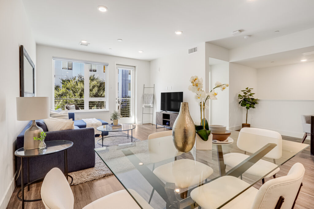 Enjoy Contemporary living at its finest with this 2 bedroom, 2 bath condominium in the heart of Silicon Valley. Built in 2019, this two-story townhome-style residence offers an open floor plan, featuring a light-filled kitchen adorned with laminate flooring, carpeted bedrooms, and two expansive balconies. The kitchen is a culinary haven equipped with stainless-steel appliances, a gas range stovetop, and an island breakfast bar. The discreetly enclosed in-unit laundry room, complete with a washer and dryer, epitomizes convenience. The primary suite boasts a walk-in closet and an en-suite bathroom featuring dual sinks, and a stall shower. Avenue One offers a luxurious array of amenities, including a pool, hot tub, fitness center, conference rooms, bike rooms, storage, and secure assigned parking in a garage with EV charging stations. Positioned near Village Oaks Shopping Plaza, VTA & Caltrain stations, and major highways 101, 85 & 87.