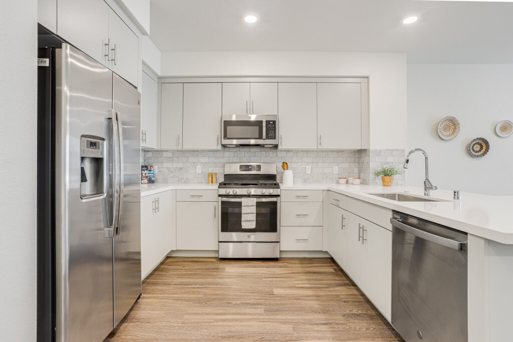 - Stainless steel appliances with gas range stovetop