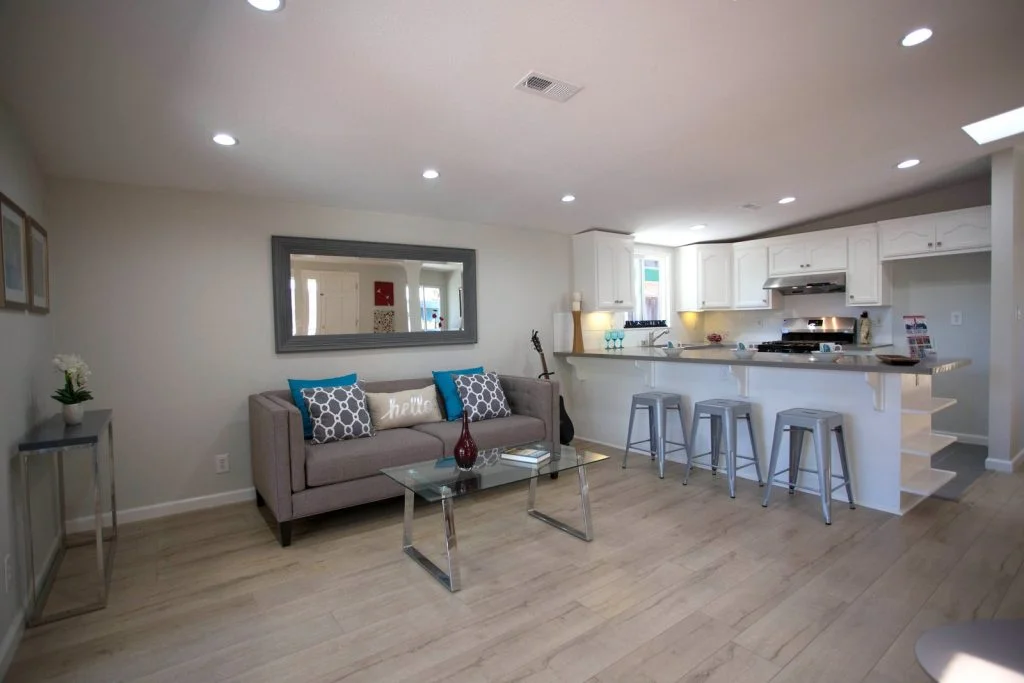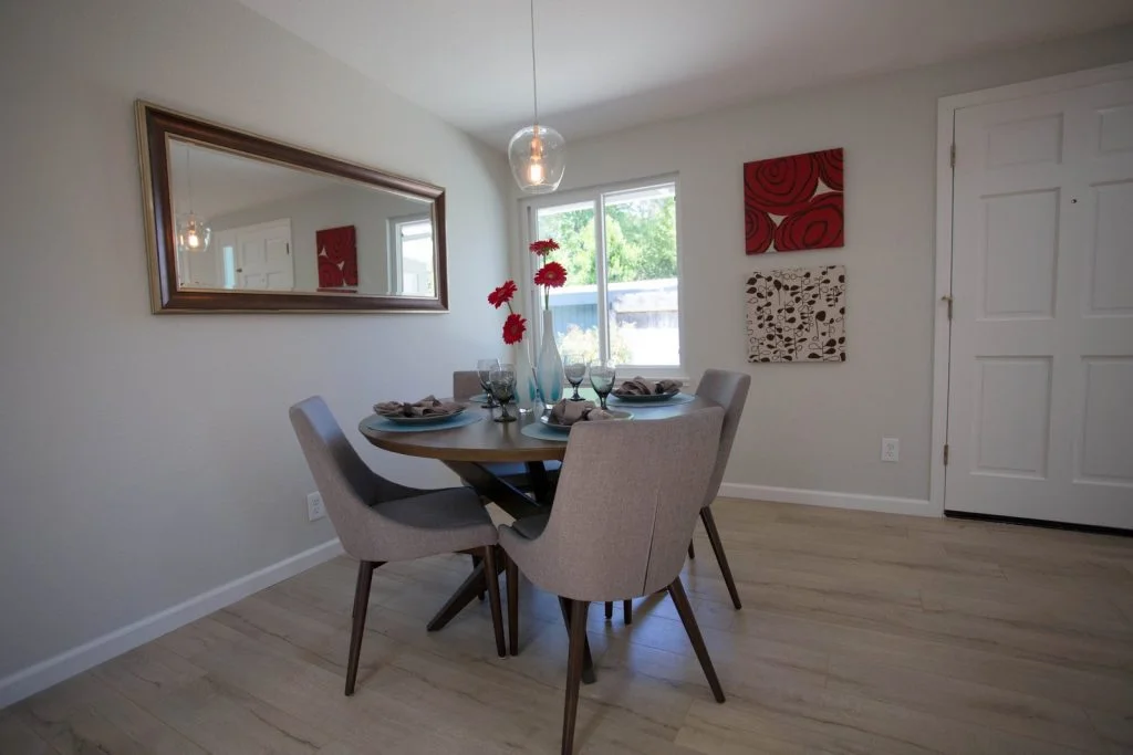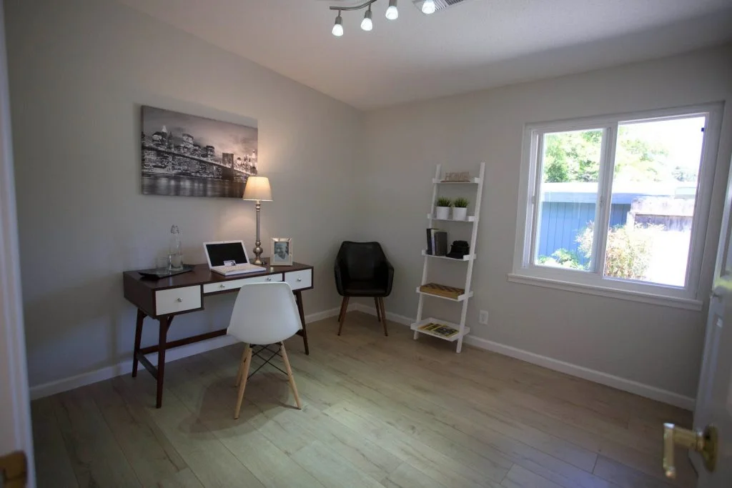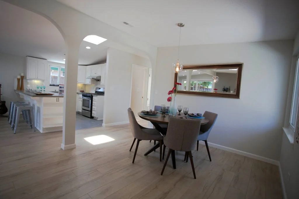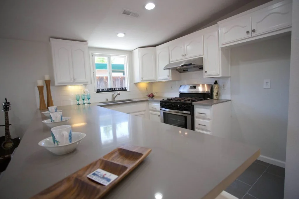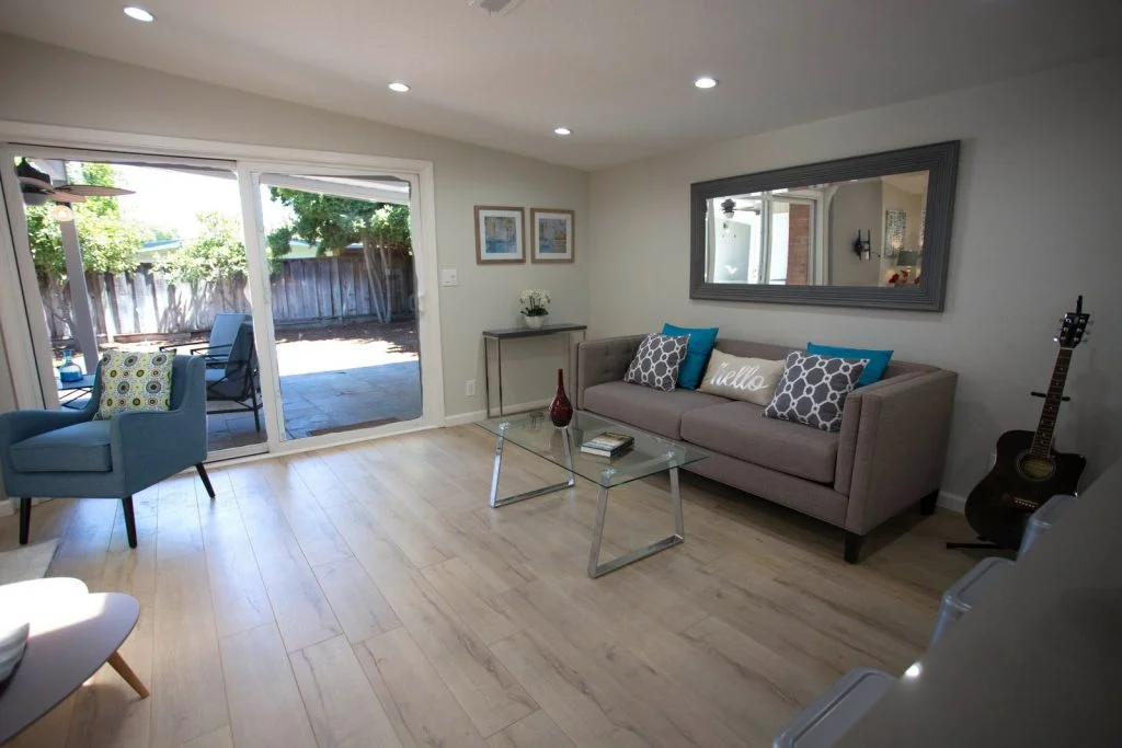 Mid-century Modern home walking distance to Sutter Elementary. This bright and beautifully updated home features an open floor plan with living room, dining room, and kitchen combined into one large living area. The kitchen features tile flooring, raised panel cabinets, cabinet pullouts, quartz slab counter tops, gas cooking, full tile backspash, and stainless steel appliances. Bathrooms feature tile floors and tiled enclosures. Private backyard with large covered slate tile patio featuring exterior lighting and fan. Other features include recessed LED lighting, TV pre-wired for power and HDMI, skylights throughout, raised panel doors, dual pane windows, central heating, spacious storage shed, and single car garage with roll up door and automatic opener.