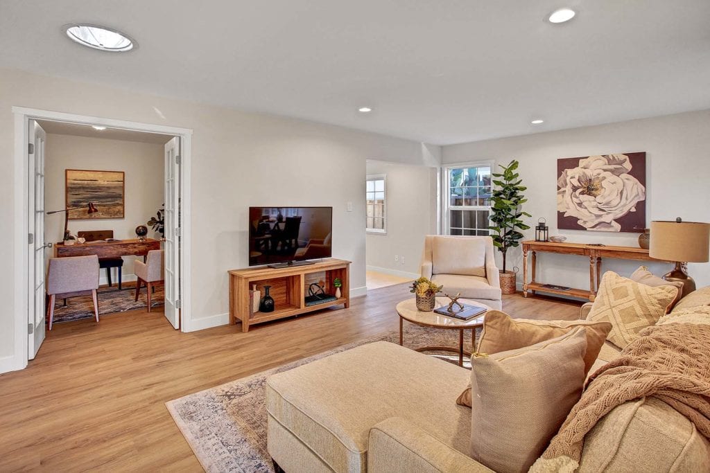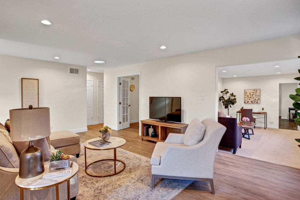 Beautifully-updated home located in the heart of Sunnyvale offers a sprawling floor plan w/ 2 spacious living areas, 4 bedrooms & an office, & brand new flooring throughout. The large living room separates the home’s 2 wings- the main wing has a master suite, 2 bedrooms, & an office space w/ french doors. The 2nd wing consists of the family room & an additional master suite, both rooms feature their own separate entrances and are perfect for in-law quarters or rental opportunity. The eat-in kitchen features gorgeous granite countertops, shaker-style cabinets, stainless-steel appliances & dining area. Additional features include serene backyard w/ prolific citrus trees & storage shed, sun-filled entryway, dual-pane windows, new flooring throughout, updated bathrooms, sun tunnel in living room, new interior/exterior paint, LED recessed lighting in common areas & an ideal location close to Sunnyvale schools, Google, NASA, Sunnyvale golf course & easy access to 101/Central expressway.