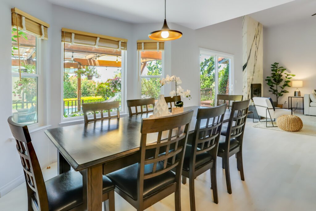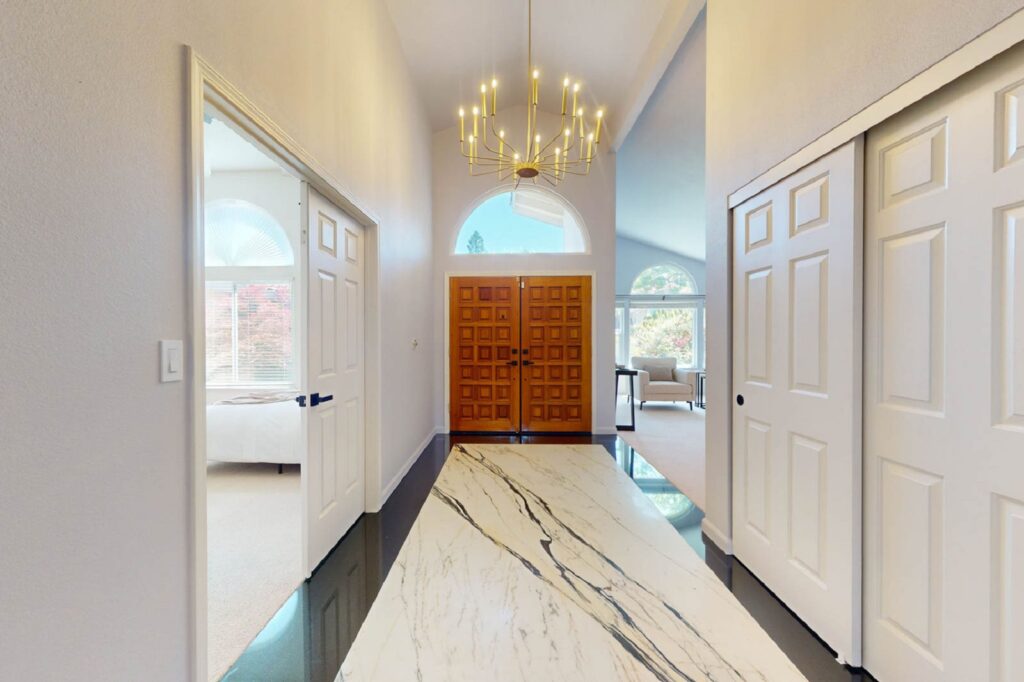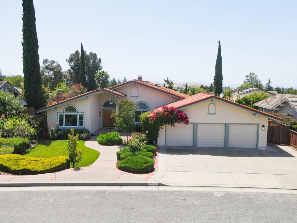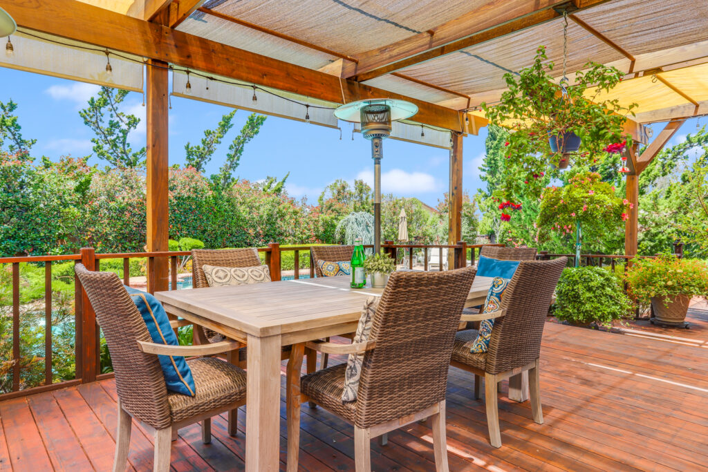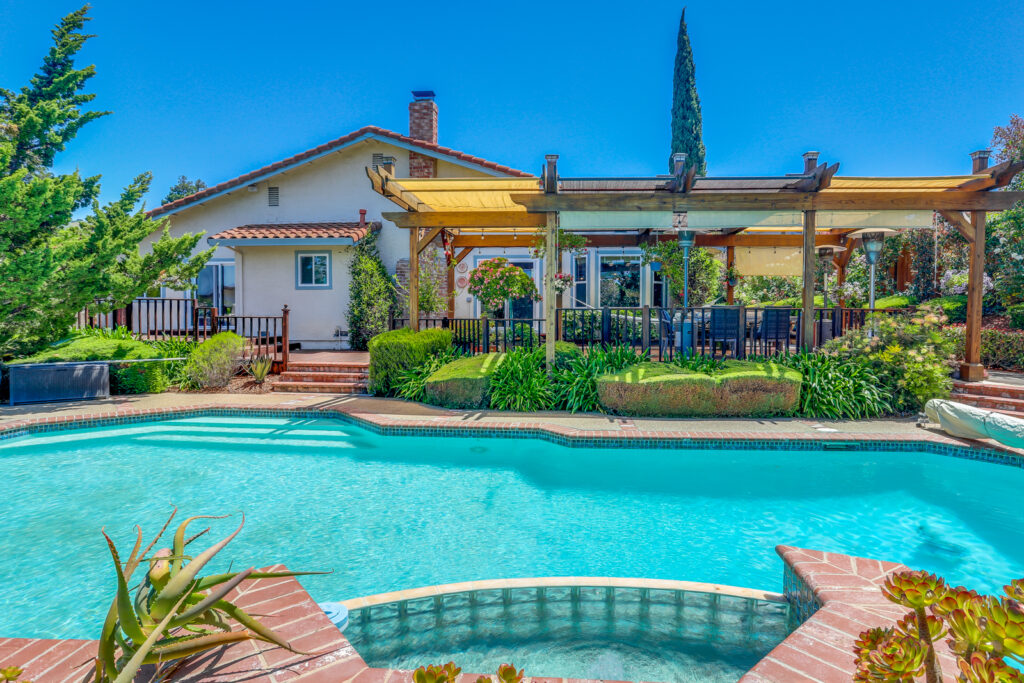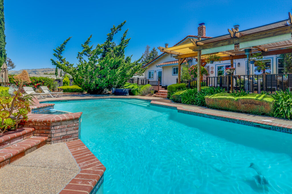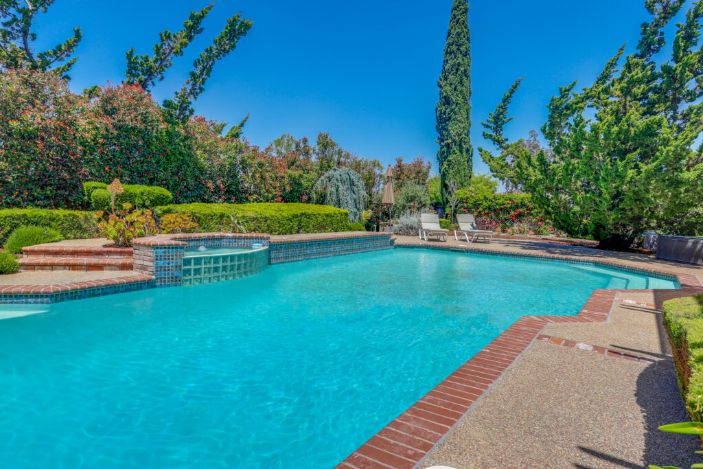 Immerse yourself in luxury living in this sprawling 5-bedroom, 3-bath home in the desirable Meadowlands community of the Evergreen Hills. This entertainer’s dream showcases an amazing backyard featuring a large covered deck overlooking a sparkling pool and waterfall feature, perfect for relaxing and creating memories. This spacious single-story home features a grand entry with high ceilings and a marble & granite slab floor. The formal living room is generous in size and highlights a central fireplace inlaid with an ornate marble slab. Overlooking your lush backyard is a combined kitchen and dining area connected to an expansive family room with an additional oversized fireplace. Kitchen features ample storage space and granite slab countertops. Your private primary suite is set in the back corner of the home with it’s own separate access to the backyard. The master bathroom has spa-like features including an oversized bathtub, dual vanity and large walk-in closet entrance. Both guest bathrooms have also been remodeled with smart toilets, thermostatic showers, marble granite inlays and glass shower enclosures. The 5th bedroom is staged as a den to showcase its versatile space. Additional features include a 3 car garage, inside laundry room, low-E glass dual pane windows, new copper plumbing, central heating and air conditioning, wet bar, wine cooler, 2 fireplaces, high ceilings, clay tile roof with water solar panels to heat the pool, and a 5.1 Kilowatt photovoltaic solar power system.