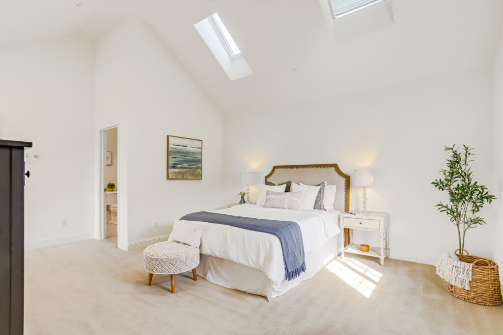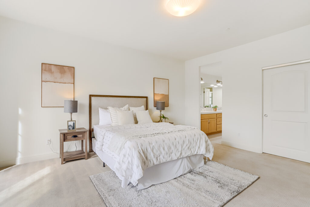 Two spacious master suites each enjoy walk-in closets and attached full bathrooms. Fresh interior paint, vaulted ceilings, double-pane windows, recessed lighting, inside laundry, central AC, and a two-car garage add to the home’s appeal.