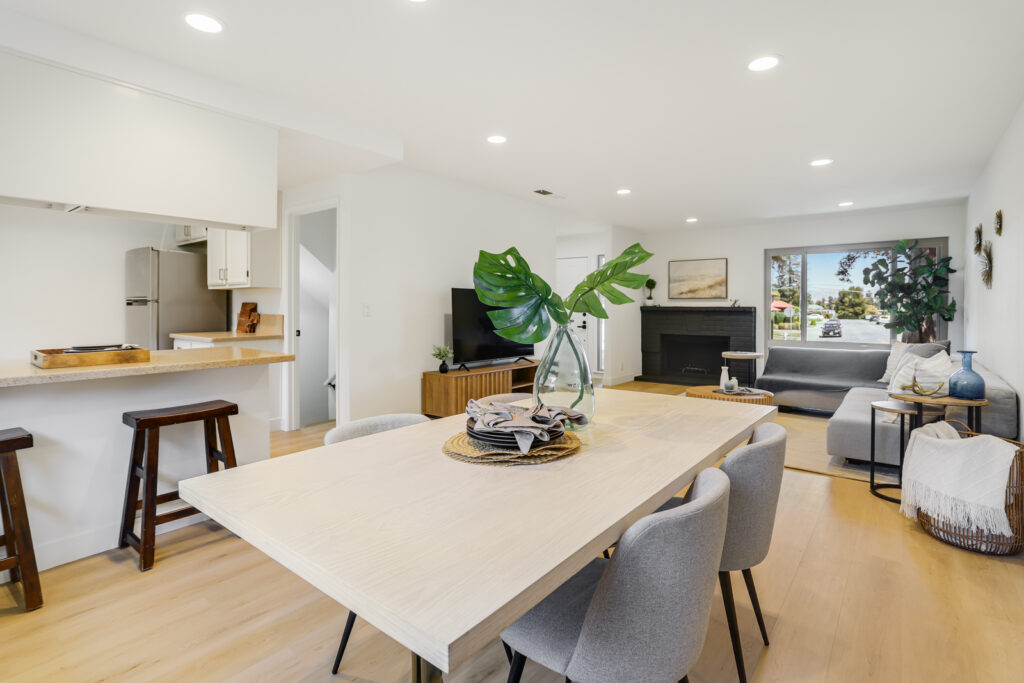 Welcome to this beautifully updated townhouse located in a desirable Santa Clara neighborhood. Step inside and be greeted by a bright, open-concept floor plan. The spacious main level seamlessly connects the living, dining, and kitchen areas, creating a perfect flow for entertaining guests or enjoying quiet evenings at home. The living room is a welcoming space, featuring new LVP flooring and a cozy fireplace, while large, newly installed dual-pane windows flood the entire home with an abundance of natural light. The kitchen is a delight with a convenient breakfast bar for casual dining. Recessed lighting adds a touch of sophistication throughout the home. Upstairs, you’ll find two generous bedrooms, including a primary suite with its own private fireplace, offering a serene retreat. Both bedrooms feature mirrored closet doors, adding to the sense of space. For ultimate convenience, the laundry facilities are also located on the upper level. A 2-car attached garage provides plenty of room for storage. This home is a true gem, combining a sought-after location with contemporary upgrades and an inviting atmosphere. Situated in a prime location, it offers easy access to a variety of shops, restaurants, tech companies, and major freeways.