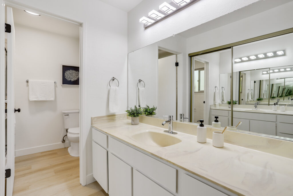 - Upgraded bathroom vanity mirrors, lights, hardware, and new toilet in the primary bathroom