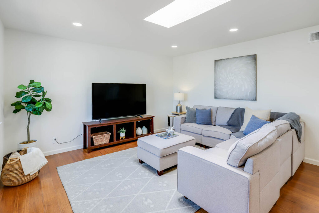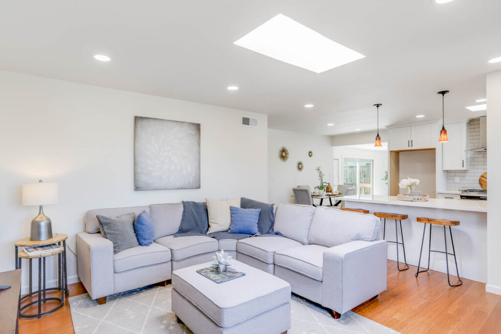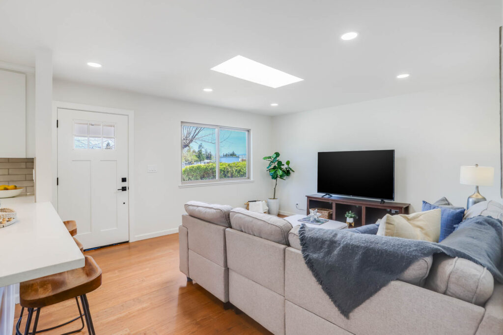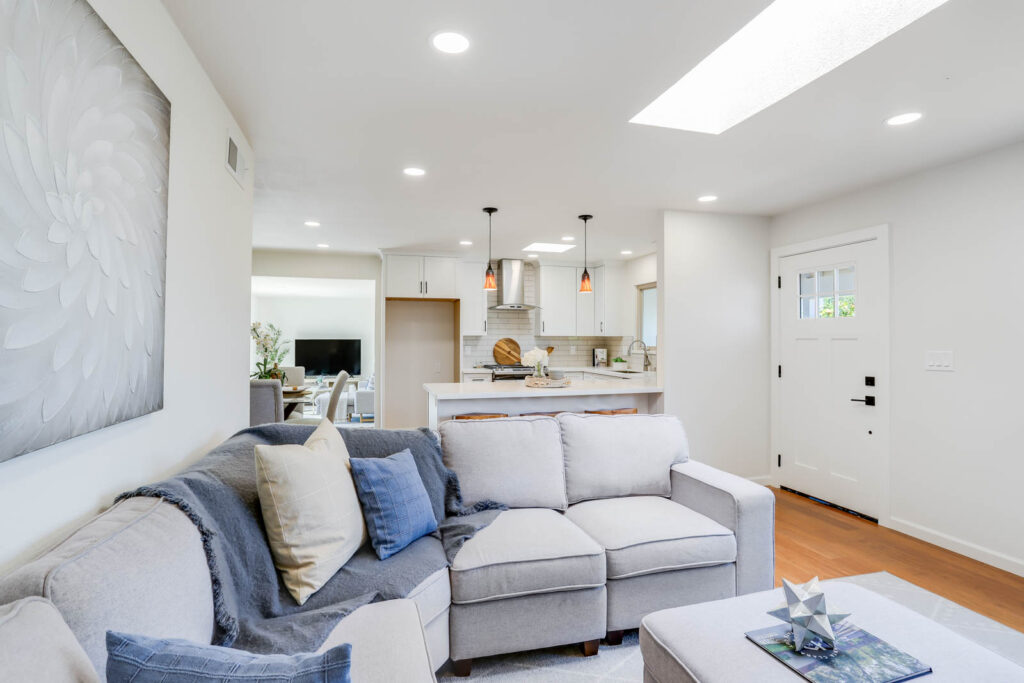 Immerse yourself in modern living in this beautifully remodeled Campbell home. The open floor plan, bathed in natural light from skylights, creates a seamless flow for entertaining. Unwind in the separate living and family rooms, each offering a distinct space to relax or gather.