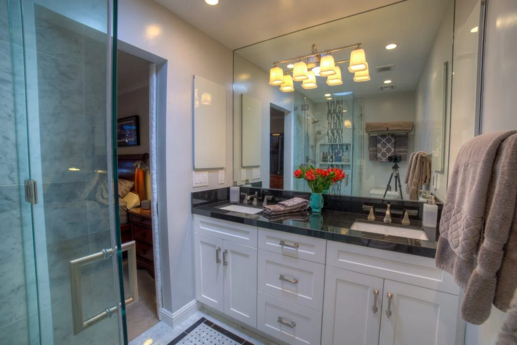 - Lighted medicine cabinets with power outlet in master bath