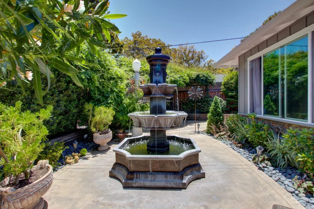 Beautifully updated Killarney Farms home features two spacious living areas, gourmet kitchen, and immaculate front/backyard landscaping. Chef’s kitchen is complete with Thermador appliances, pot filler, soft-close doors and drawers, retractable mixer stand, Brazilian granite countertops, LED recessed/under counter lighting, and lazy susan corners. Elegantly renovated bathrooms feature Absolute black granite countertops and Kohler brushed nickel fixtures. Master en suite features lighted medicine cabinets with power outlets, heated floors, and frameless shower enclosure. Professionally landscaped ever-blooming yards feature 3 cast stone A. Silvestri fountains, benches, and mosaic tiled table. Home is approx. 3.3 miles to Apple Spaceship campus. Easy walk to parks, shopping, schools and high tech company shuttle stops.