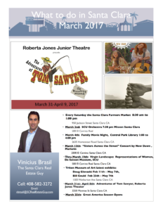 Are you looking for fun stuff to do with your family, friends, co-workers or essentially anyone you want to spend some time with…check out these events below that are happening in Santa Clara this month. The sun is finally shining so grab your family and head on over to the Farmers Market. I promise you will not be disappointed with what they have to offer. For my friends with kids, check out all the fun events at the library its a great place to have your kids explore. Lastly, buy your tickets for the Robert Jones Theater Production of The Adventures of Tom Sawyer. Hope whatever you do this month in Santa Clara, you have fun doing it.