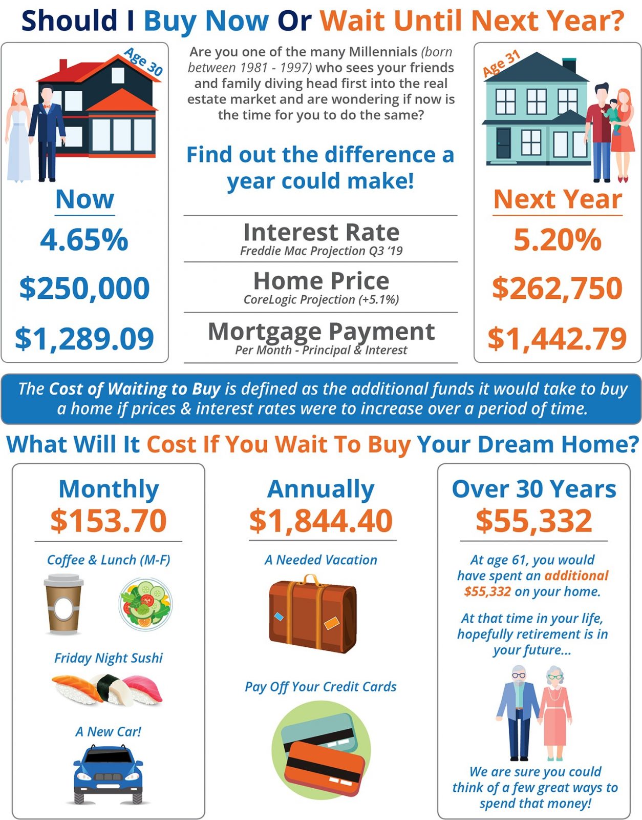 • The cost of waiting to buy is defined as the additional funds it would take to buy a home if prices & interest rates were to increase over a period of time.